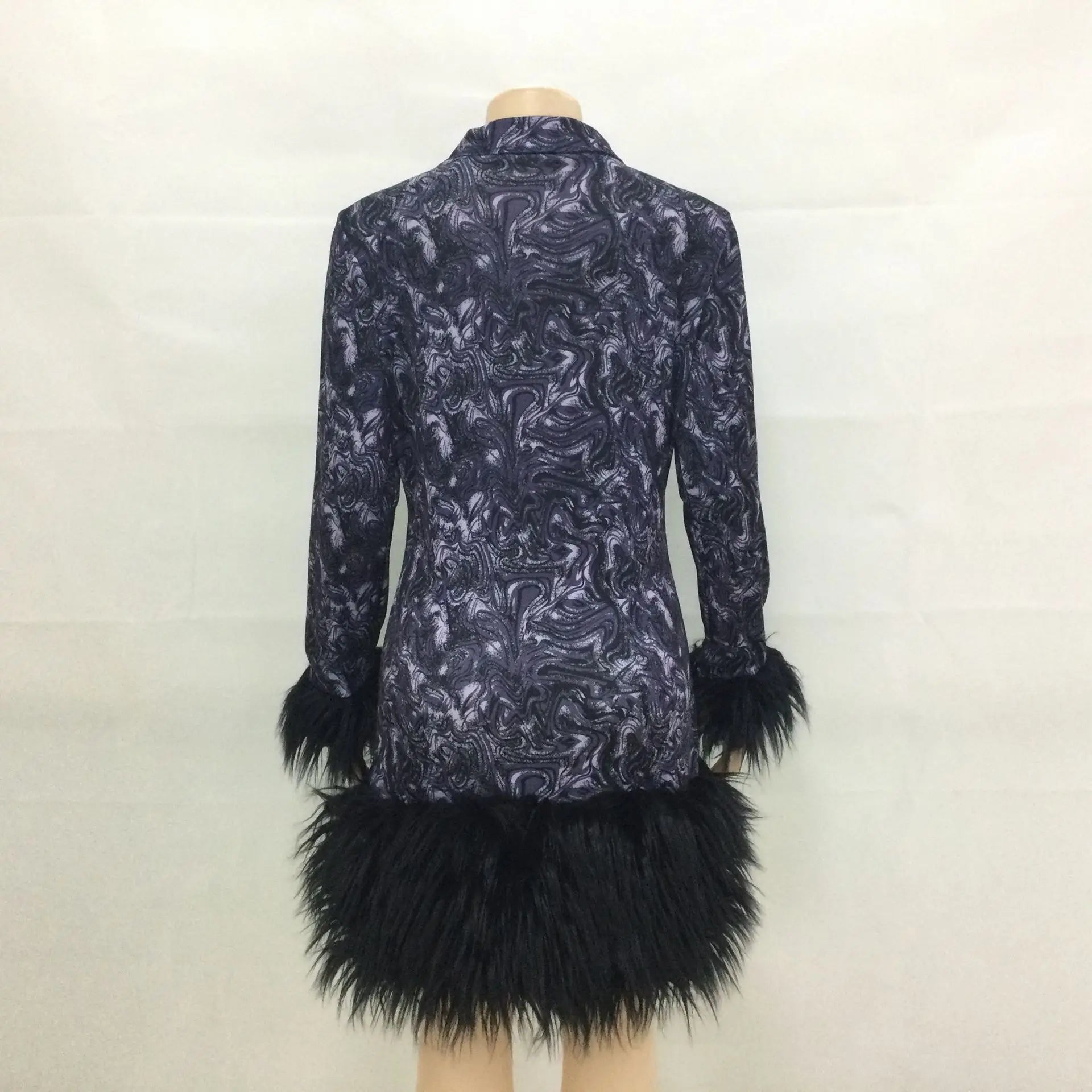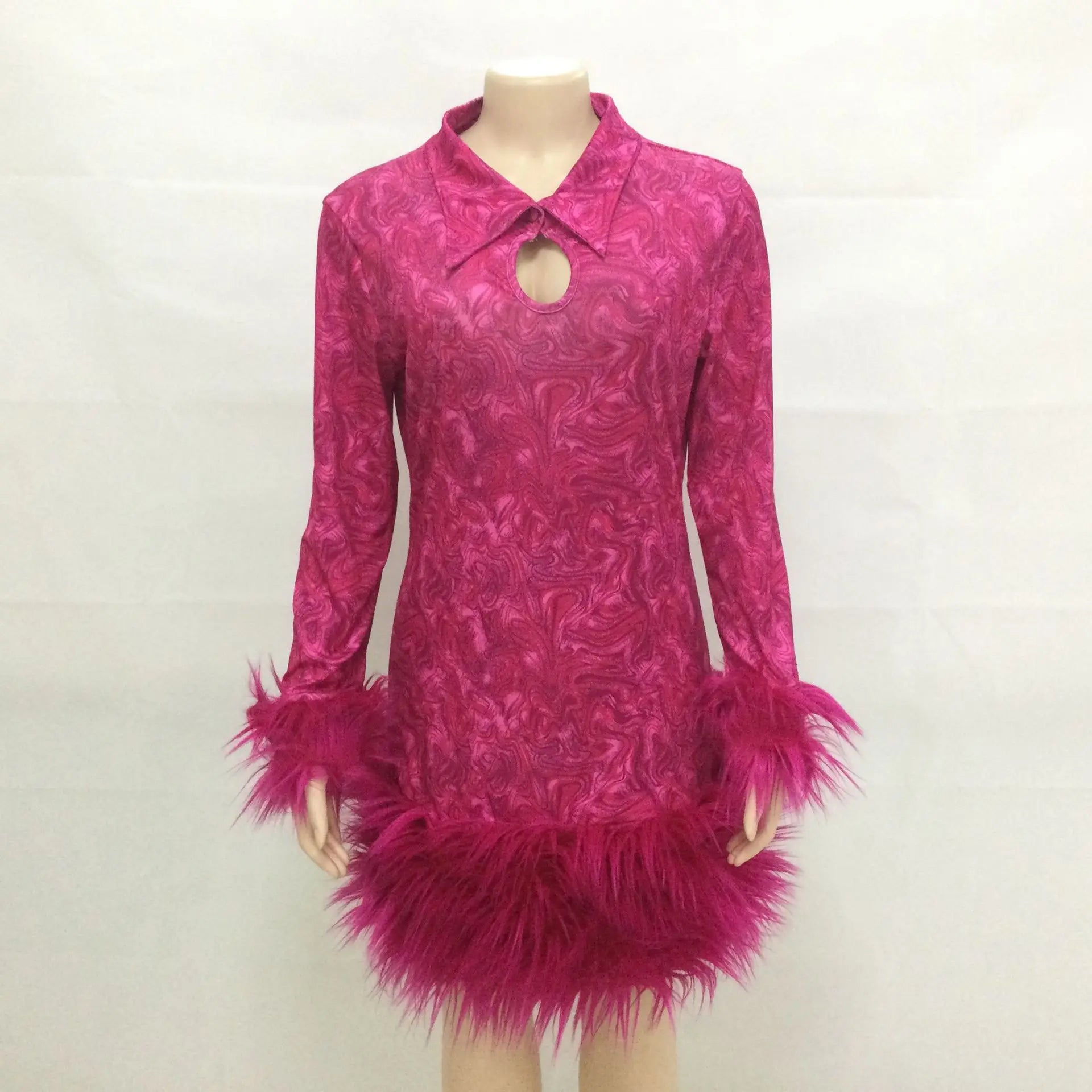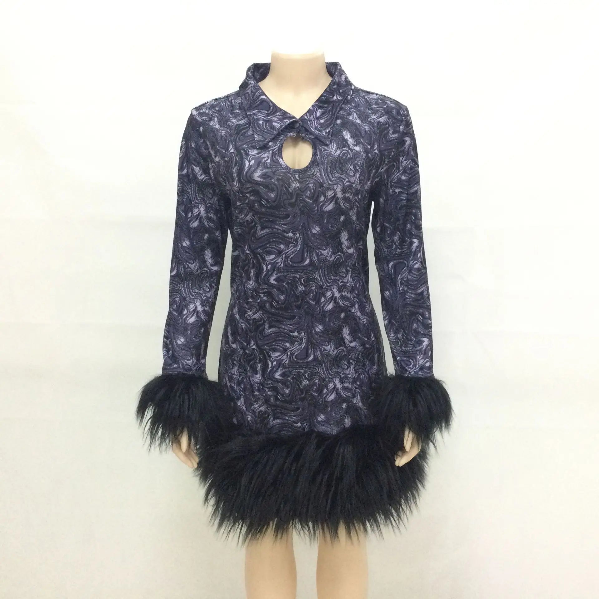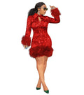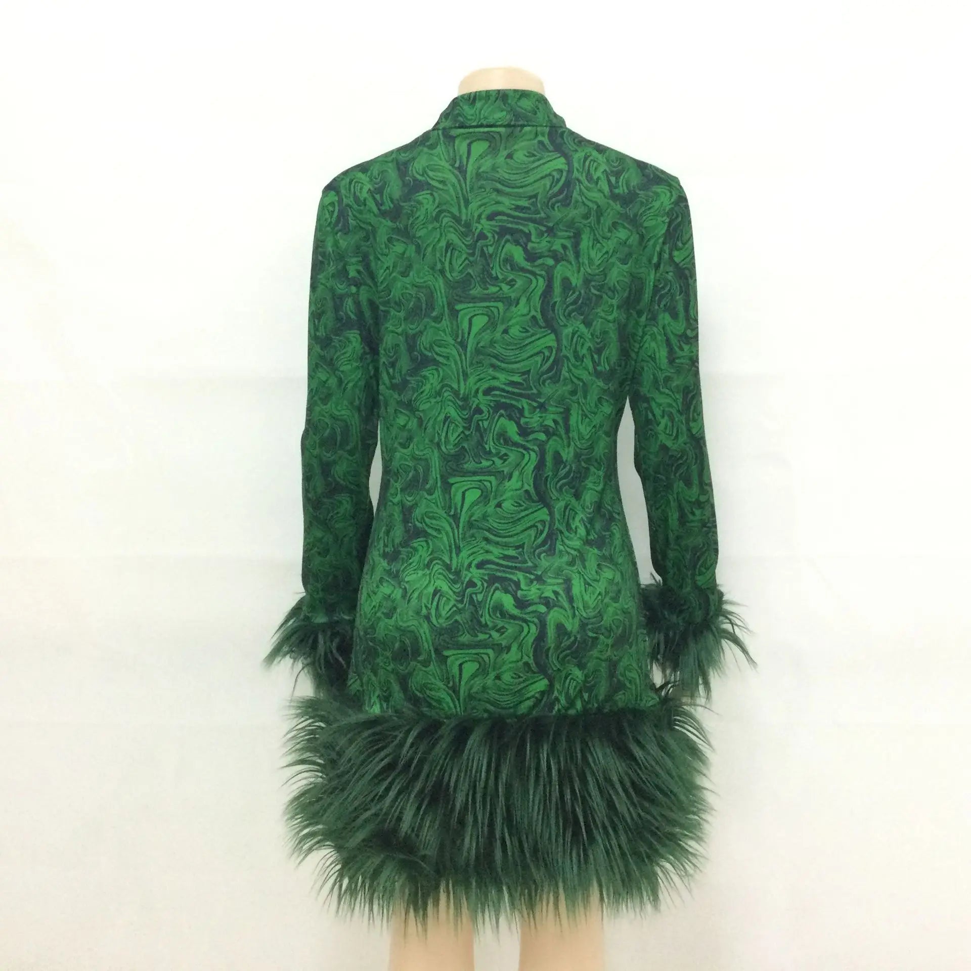 Plus Size Printed Slim Fit Dress – Elegant Long Sleeve