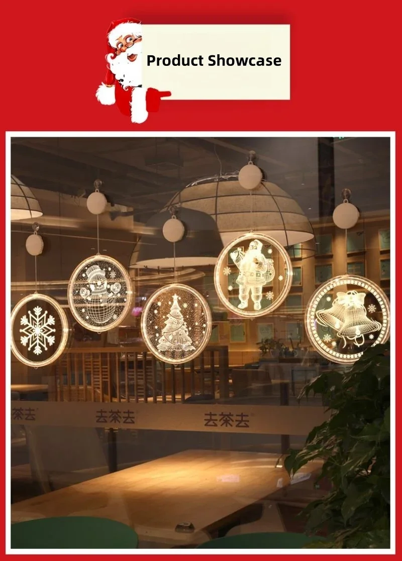 Merry Christmas LED Fairy Lights Santa Claus Elk Living Doors Windows Decoration New Year Gift