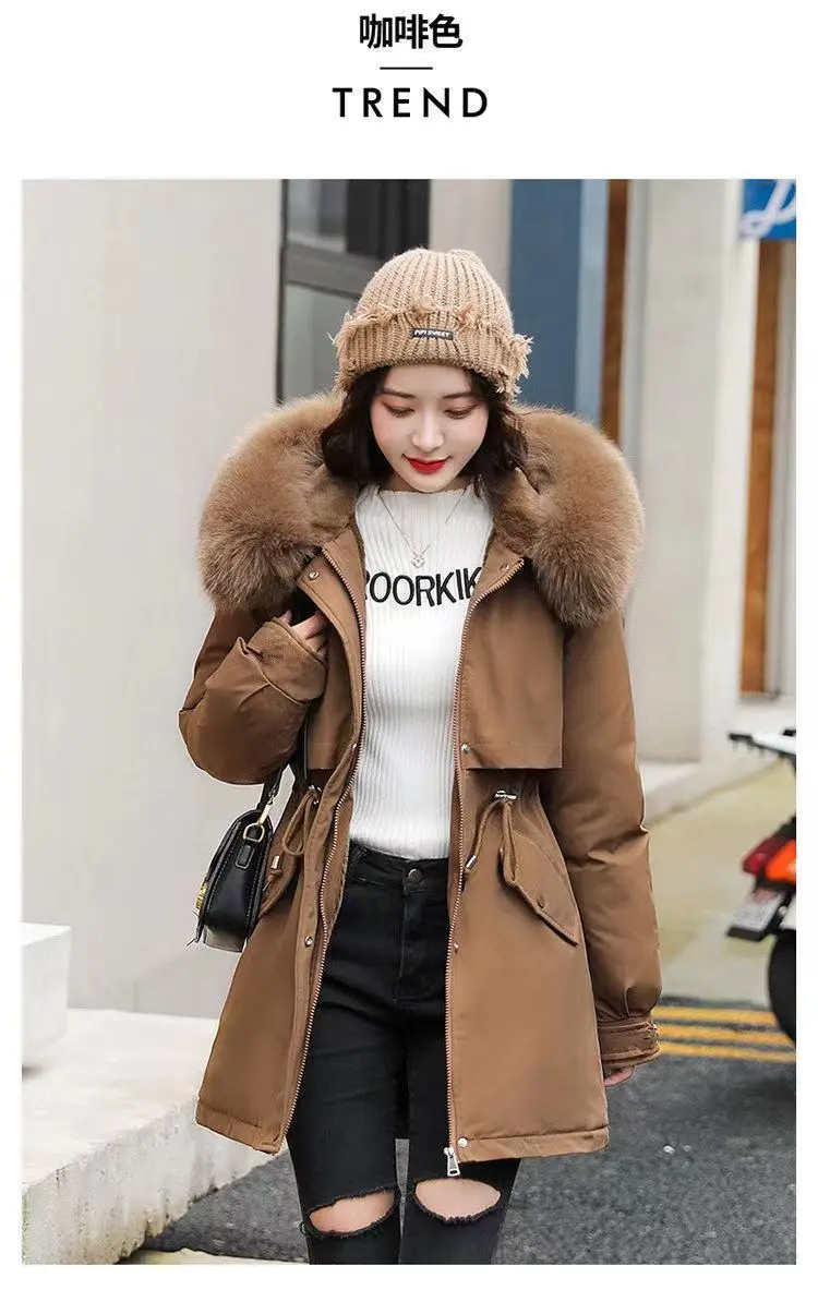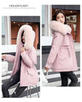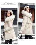 2025 Women’s Winter Coat – Thick Cotton Parka with Fur Collar, Mid-Long Warm Overcoat Korean Style