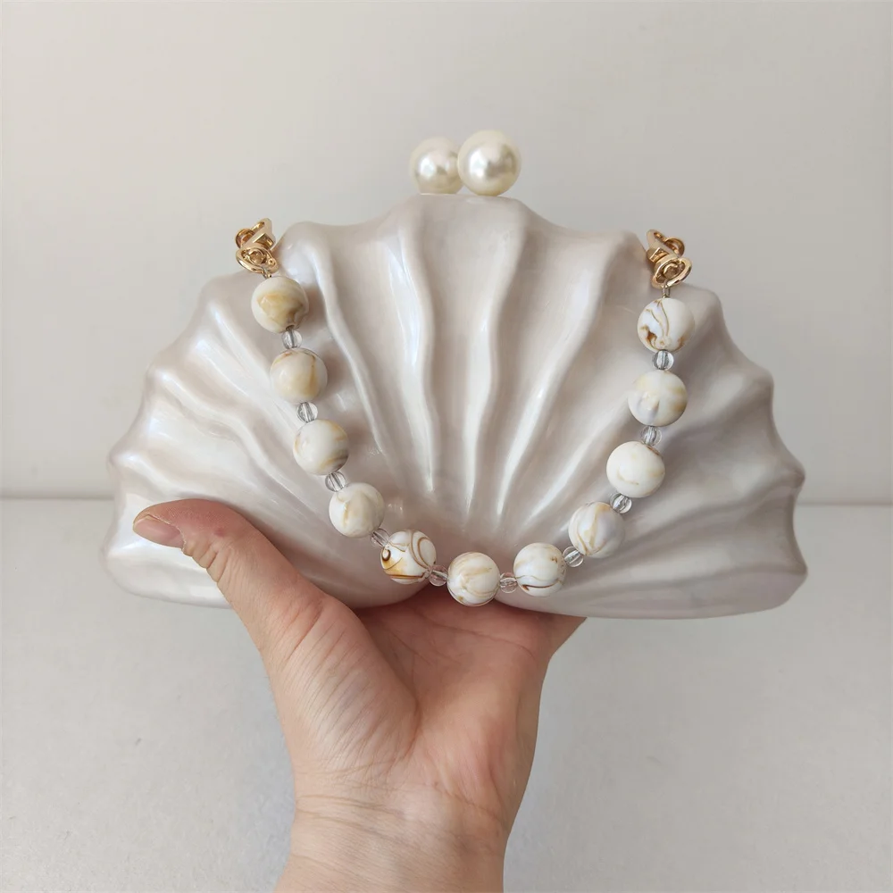 Acrylic Shell Beaded Box Clutch – Women’s Mini Summer Beach Shoulder & Evening Bag