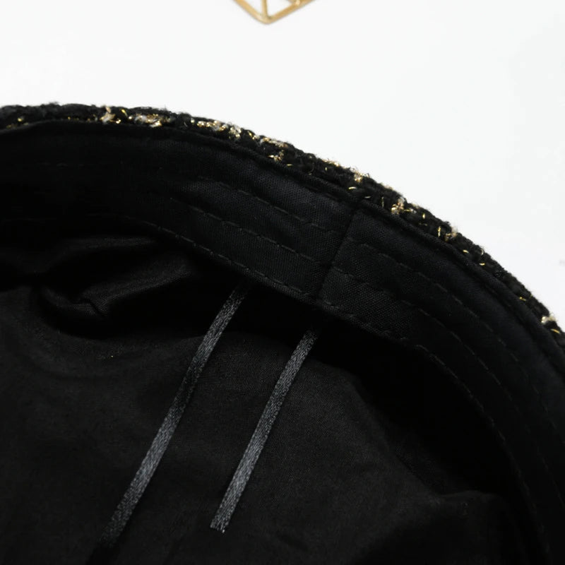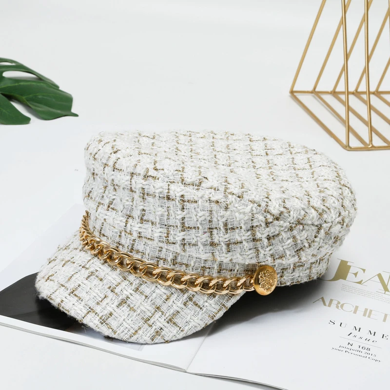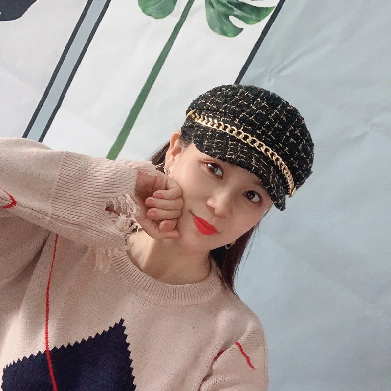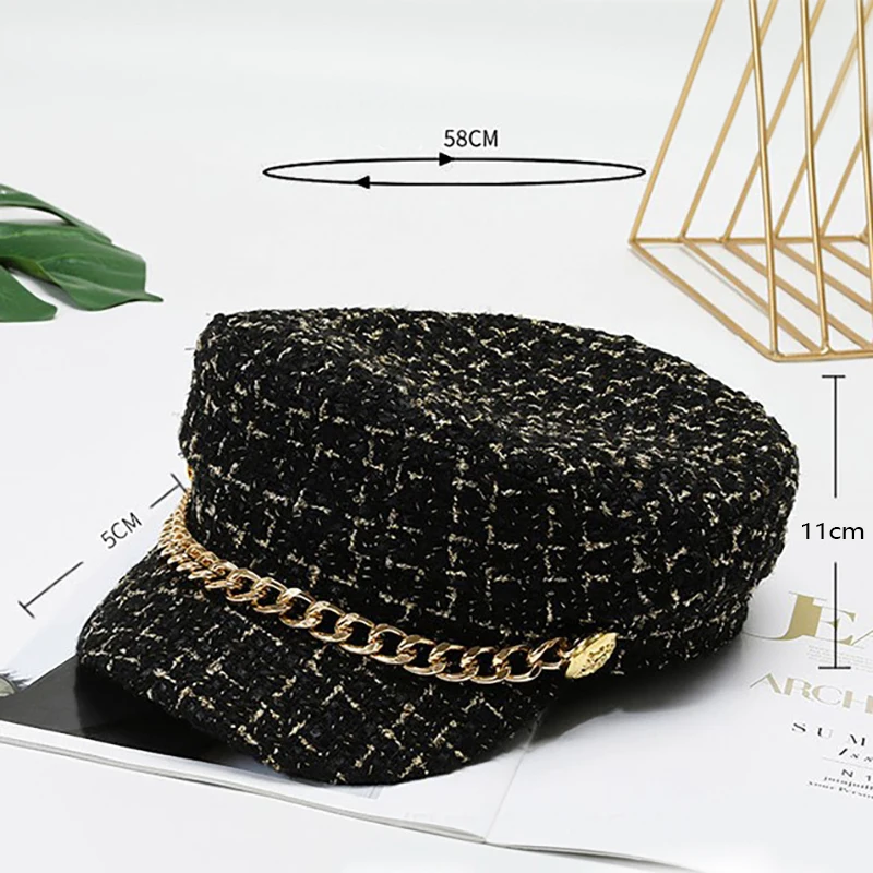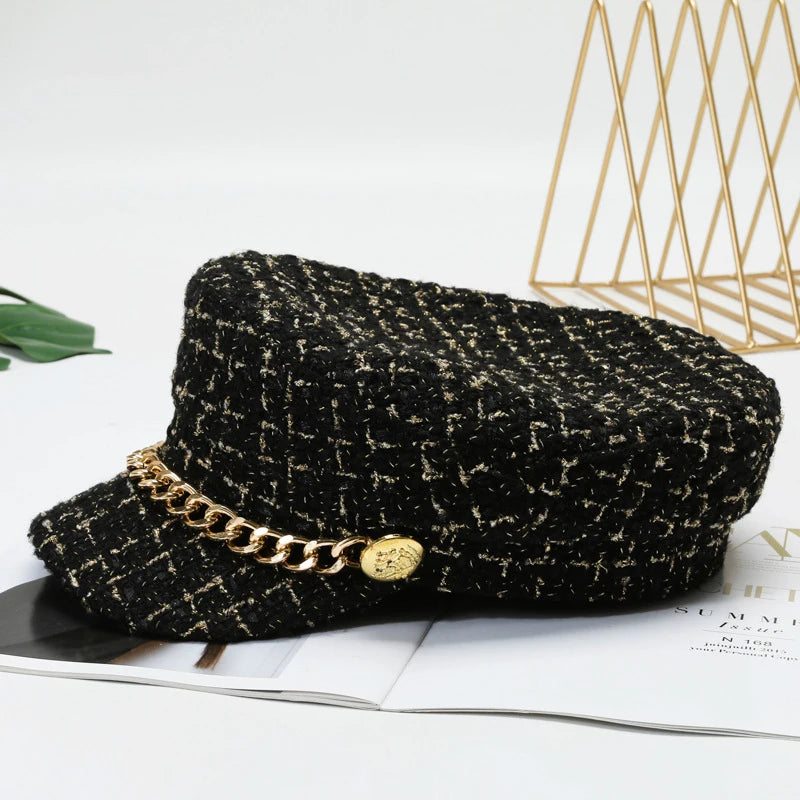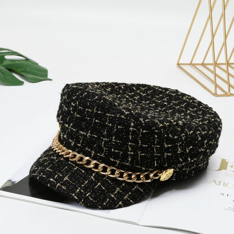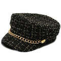 Autumn Winter Pearl Chain Navy Hat – Women’s Fashion Beret Newsboy Cap