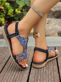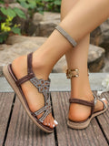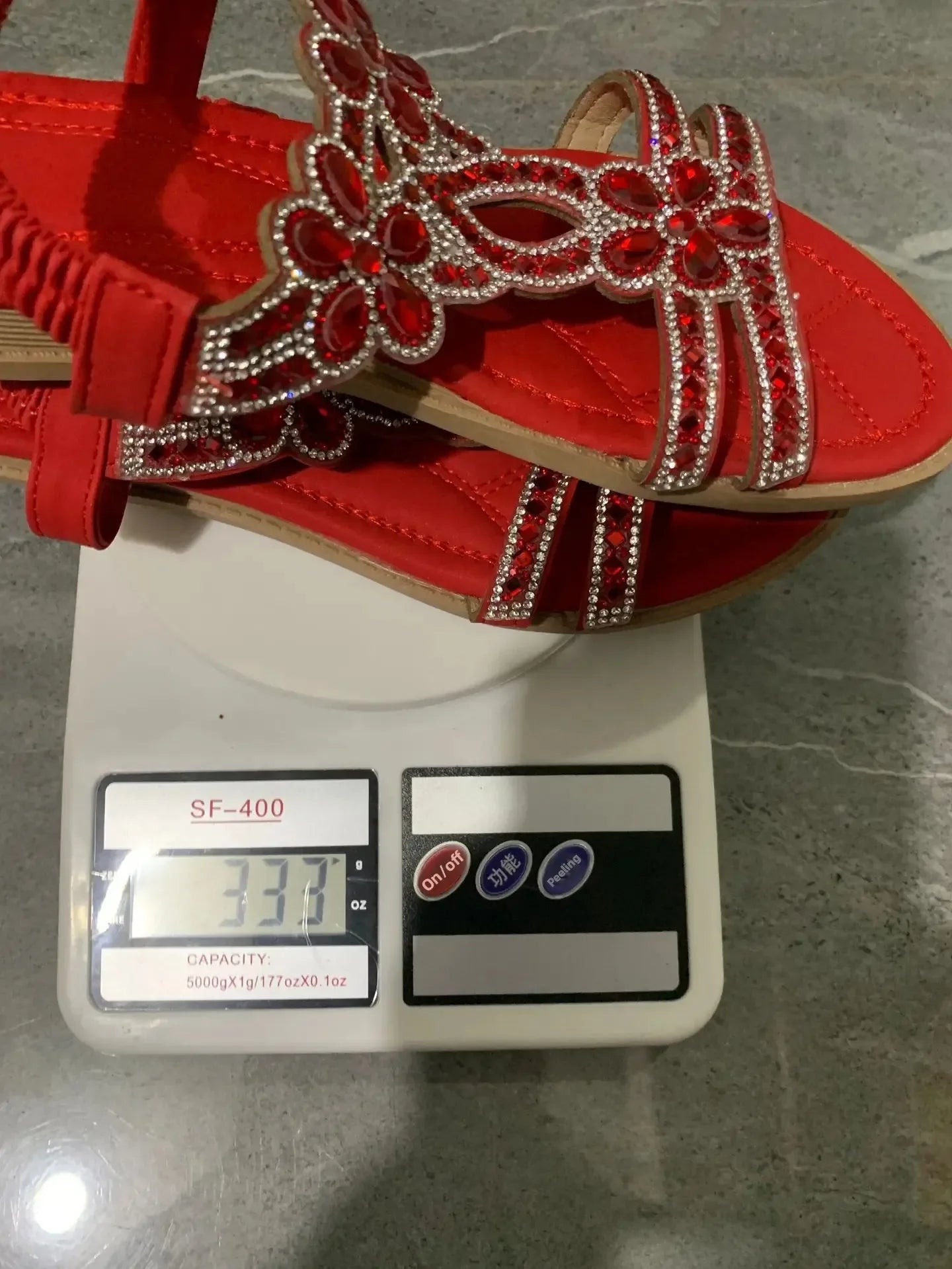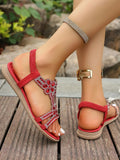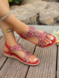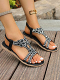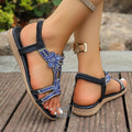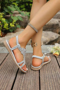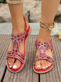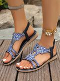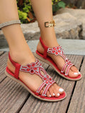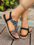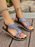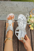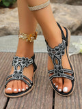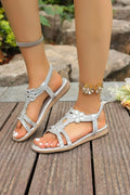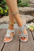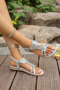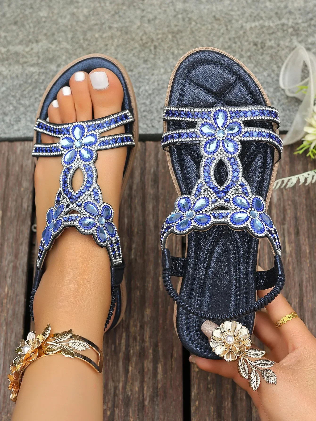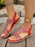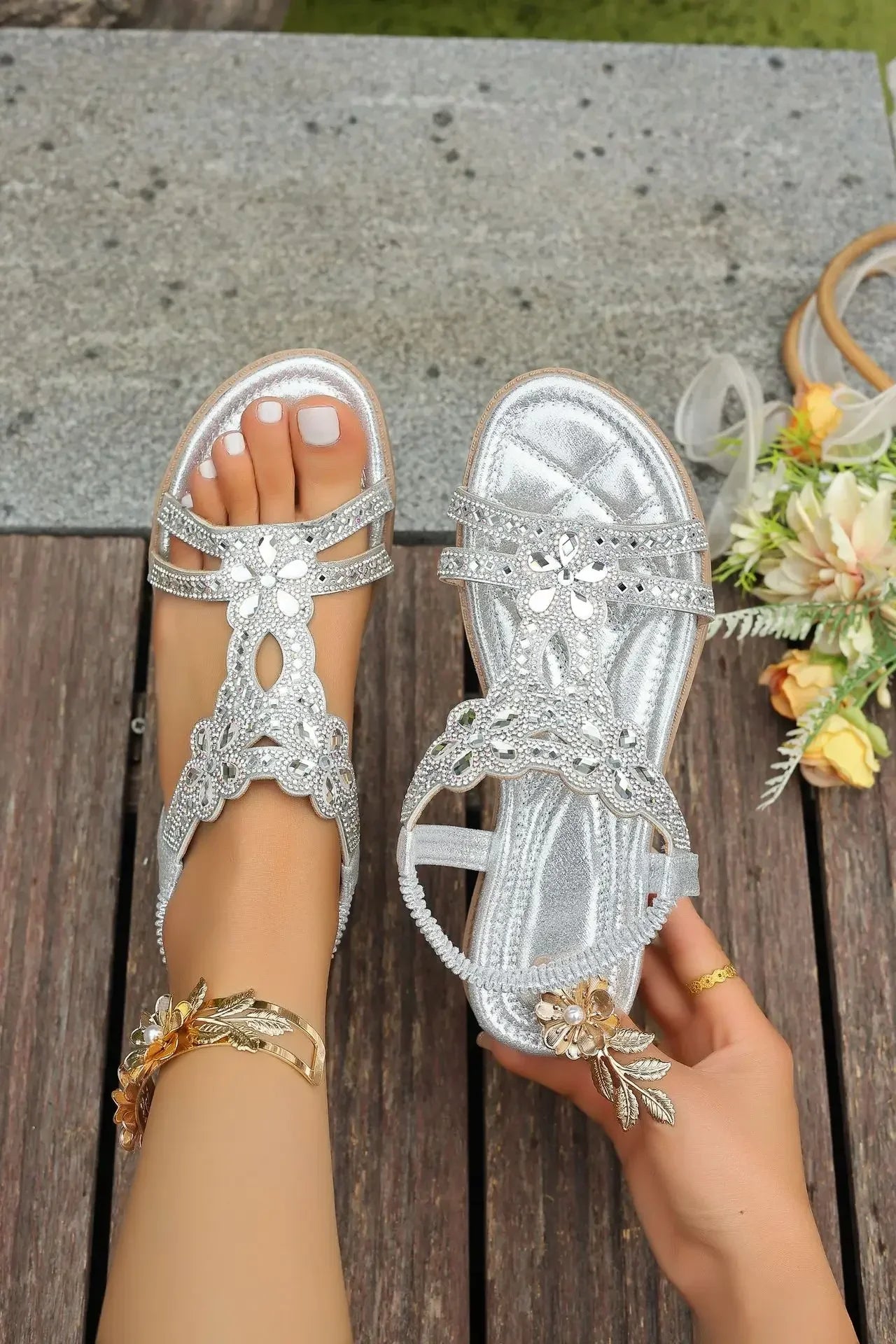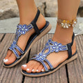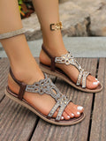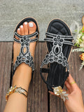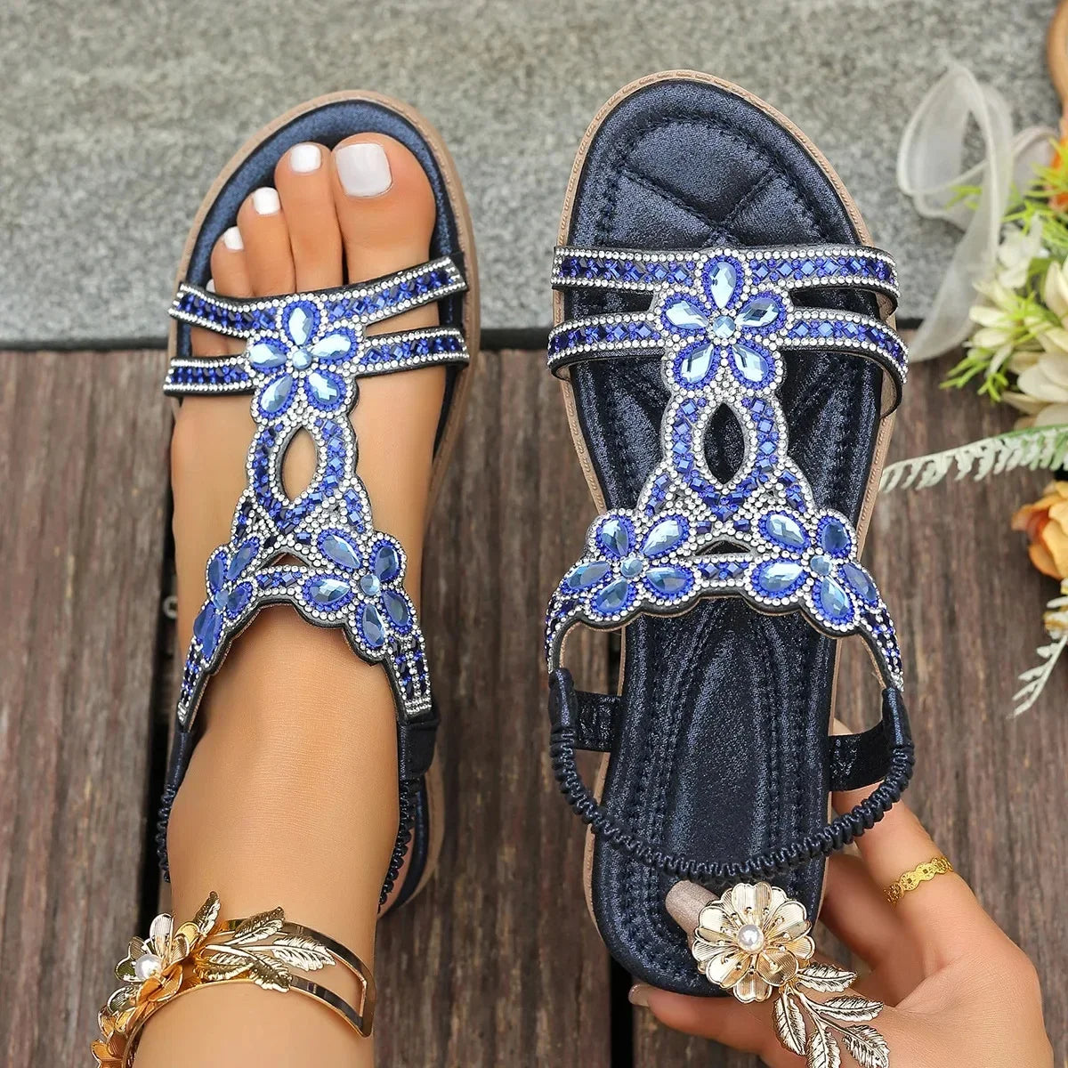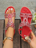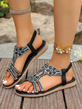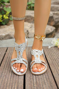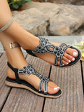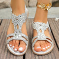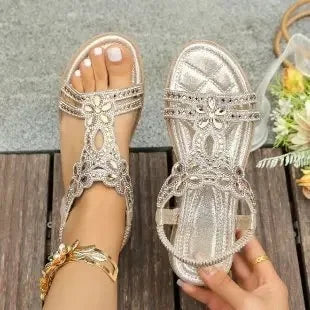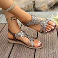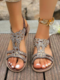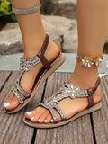 Bohemian Women’s Sandals – Crystal Hollow-Out Flat Summer Shoes with Ankle Coverage