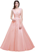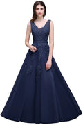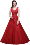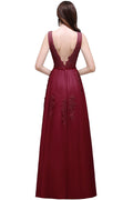 Women Burgundy Evening Dress Lace Appliques Tulle V-Neck Sexy Backless Prom Dresses A-Line Floor-Length Sleeveless Party Vestido