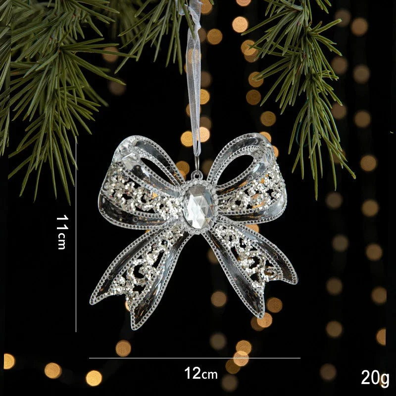 Christmas Crystal Acrylic Ornaments – Clear Heel Shoes & Angel Bow Hanging Pendants for Xmas Tree Decor