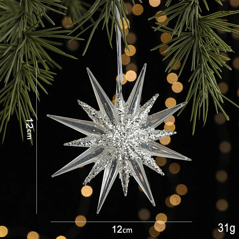 2. This Christmas ice crystal ornament is made of transparent acrylic material and features classic Christmas elements such as snowflakes, carriages, reindeer, etc. It shines brightly under the light, presenting an elegant and luxurious effect, perfectly blending traditional and modern elements, adding unique charm to your Christmas tree.