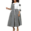 Elegant Dresses for Women 2025 Fall Fashion African 3/4 Sleeve Party Birthday New Robe Chic 3D Flower Plaid Evening A-Line Dress