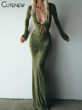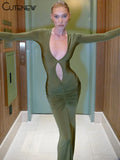Elegant Sexy Low Neck Hollow Full Sleeve Body-shaping