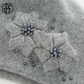 FS Women’s Winter Beanie – 2023 Knitted Rabbit Fur Hat with Double-Layer Flower Beret for Warmth