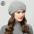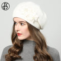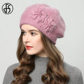 FS Winter Hats For Women Beanie Rabbit Fur 2023 Warm Knitted Hat Flower Double Layers Warm Beret Snow Caps Berets Gorros Femme