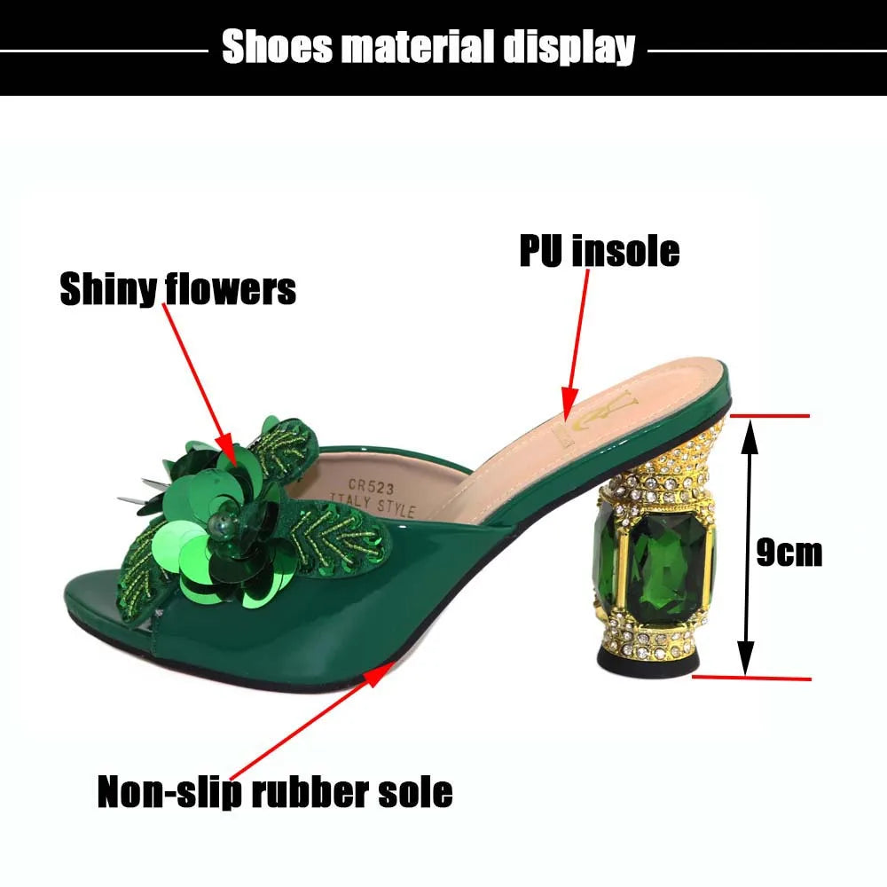 Green Rhinestone African Pumps – Elegant Wedding High Heels
