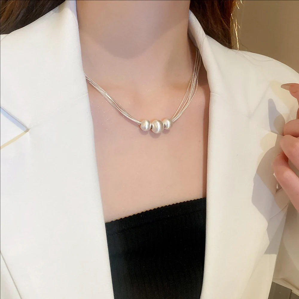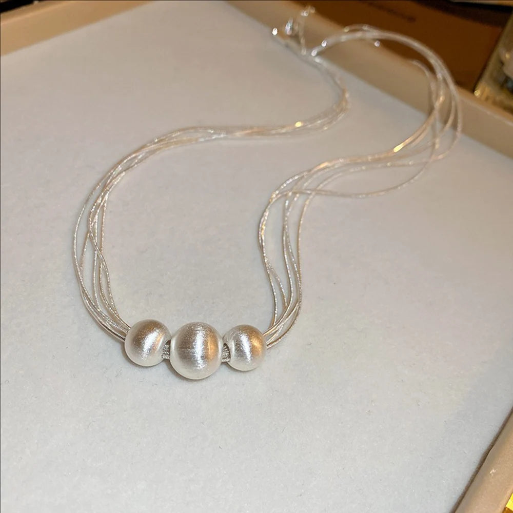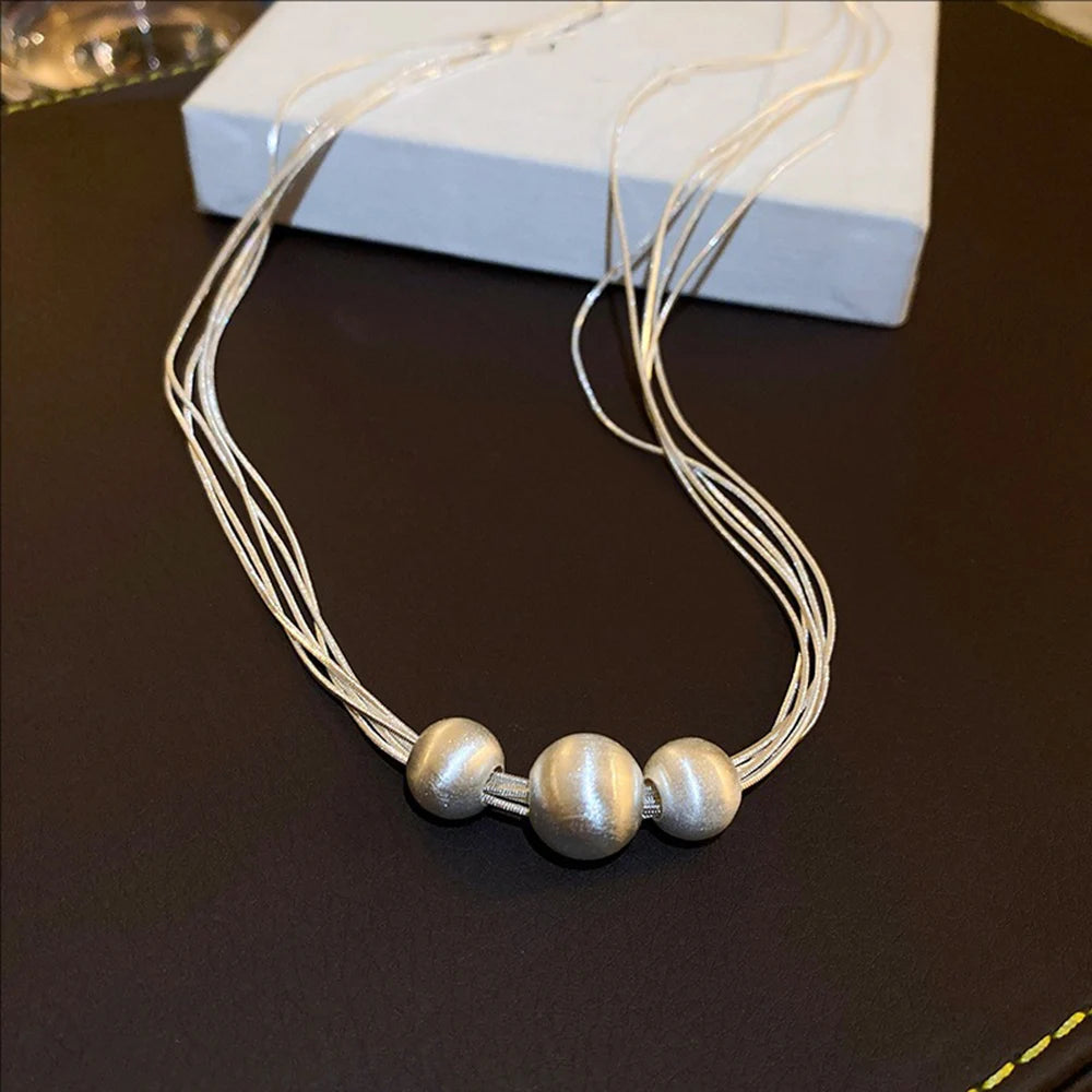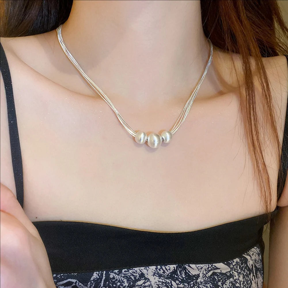 Shimmering Brushed Round Bead Multi-layer Necklace Fashionable Elegant Collarbone Chain New Neck Chain Stylish Jewelry