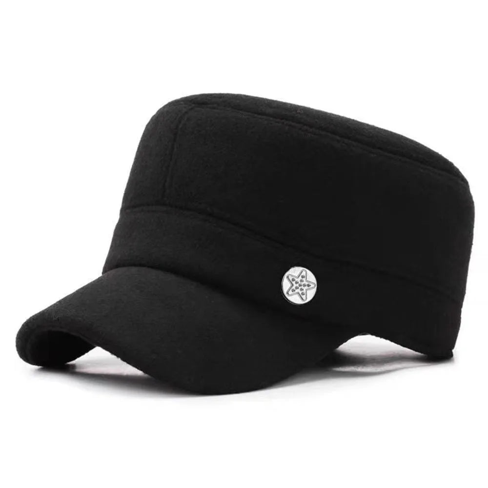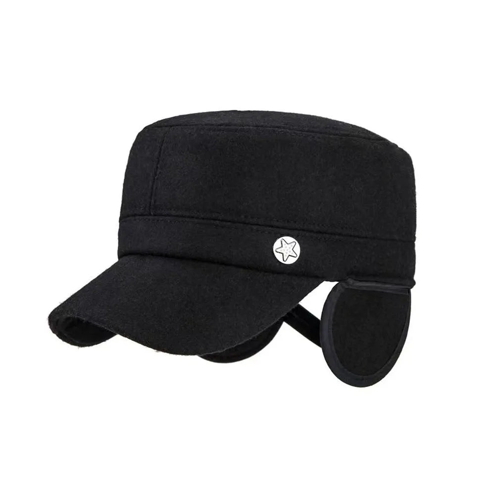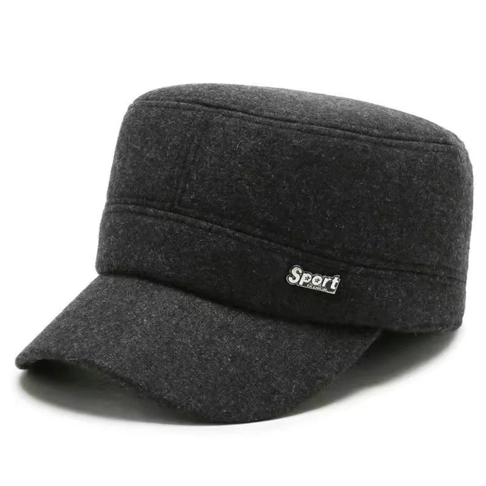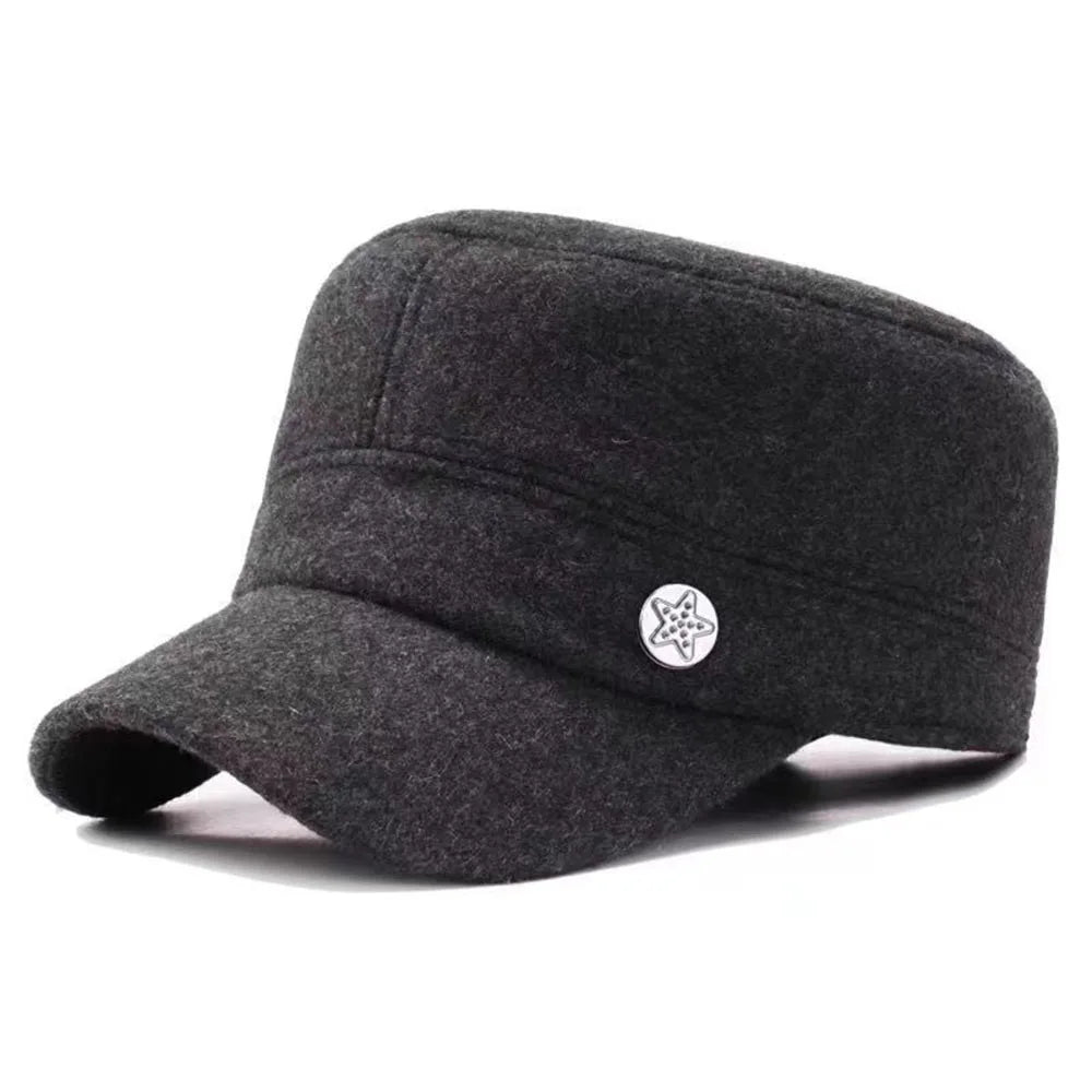 Men’s Warm Wool Flat Cap – Winter Fleece Hat with Ear Protection