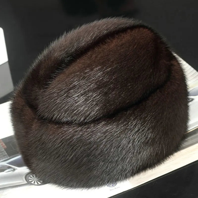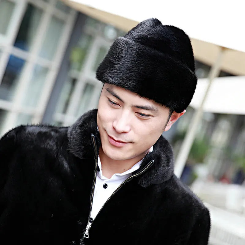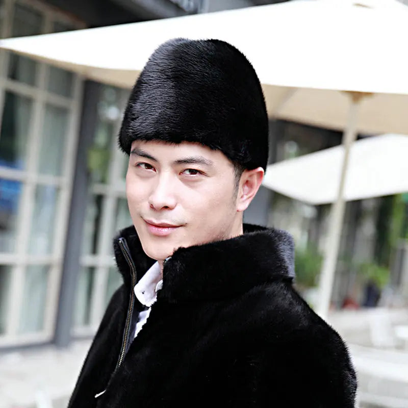 Men’s Winter Mink Fur Hat – Handmade Warm Gentleman Cap with Cotton & Polyester Lining