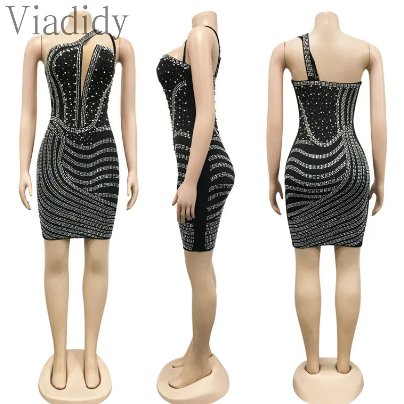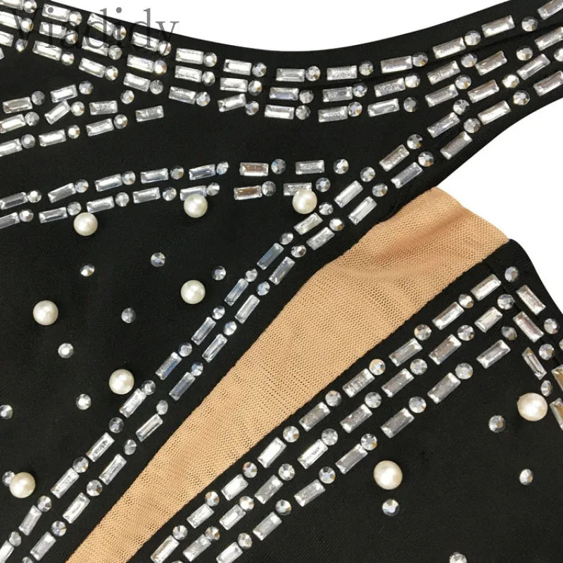 Mesh See Through Rhinestone Sleeveless Backless Party Dress