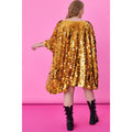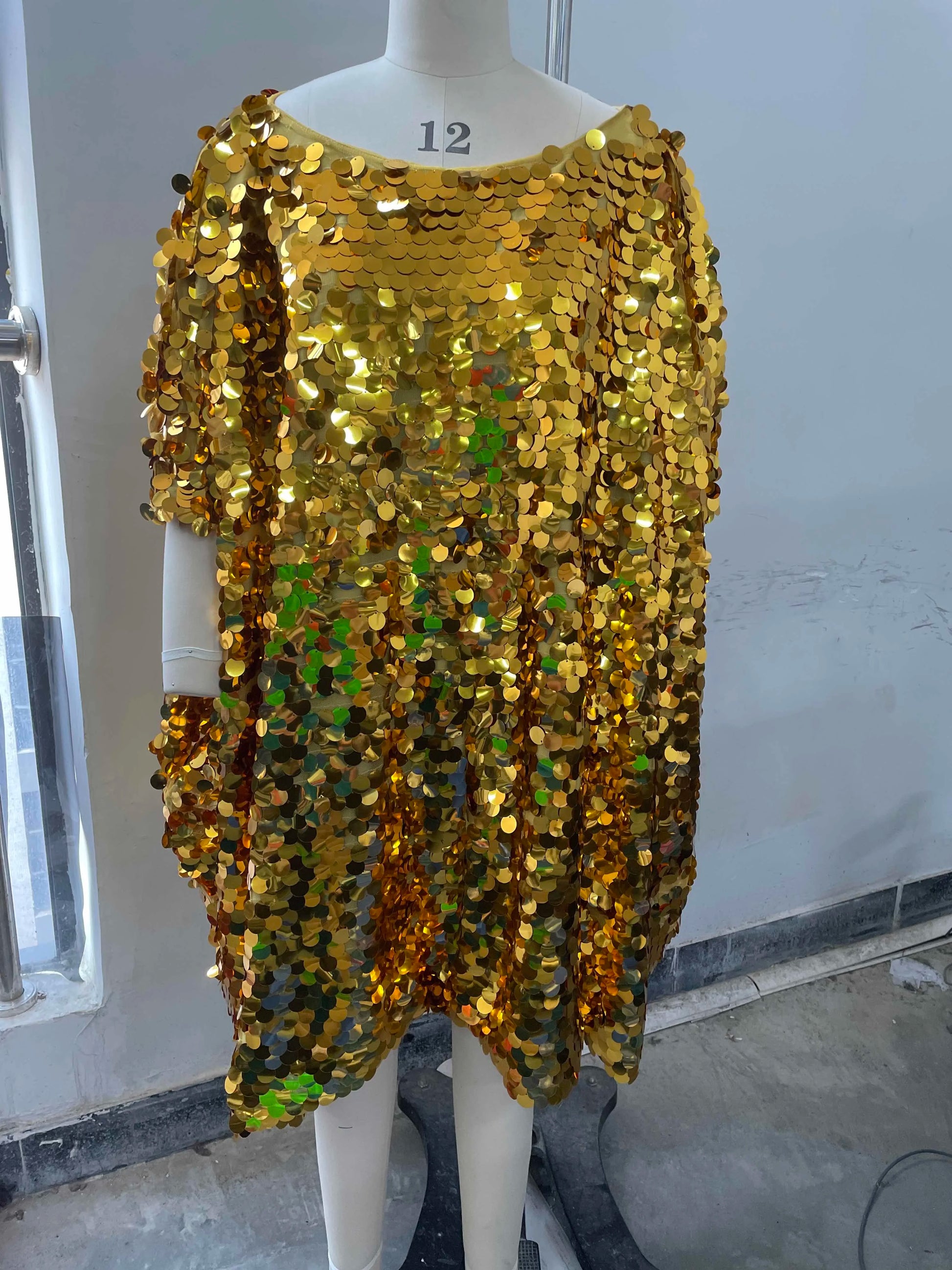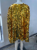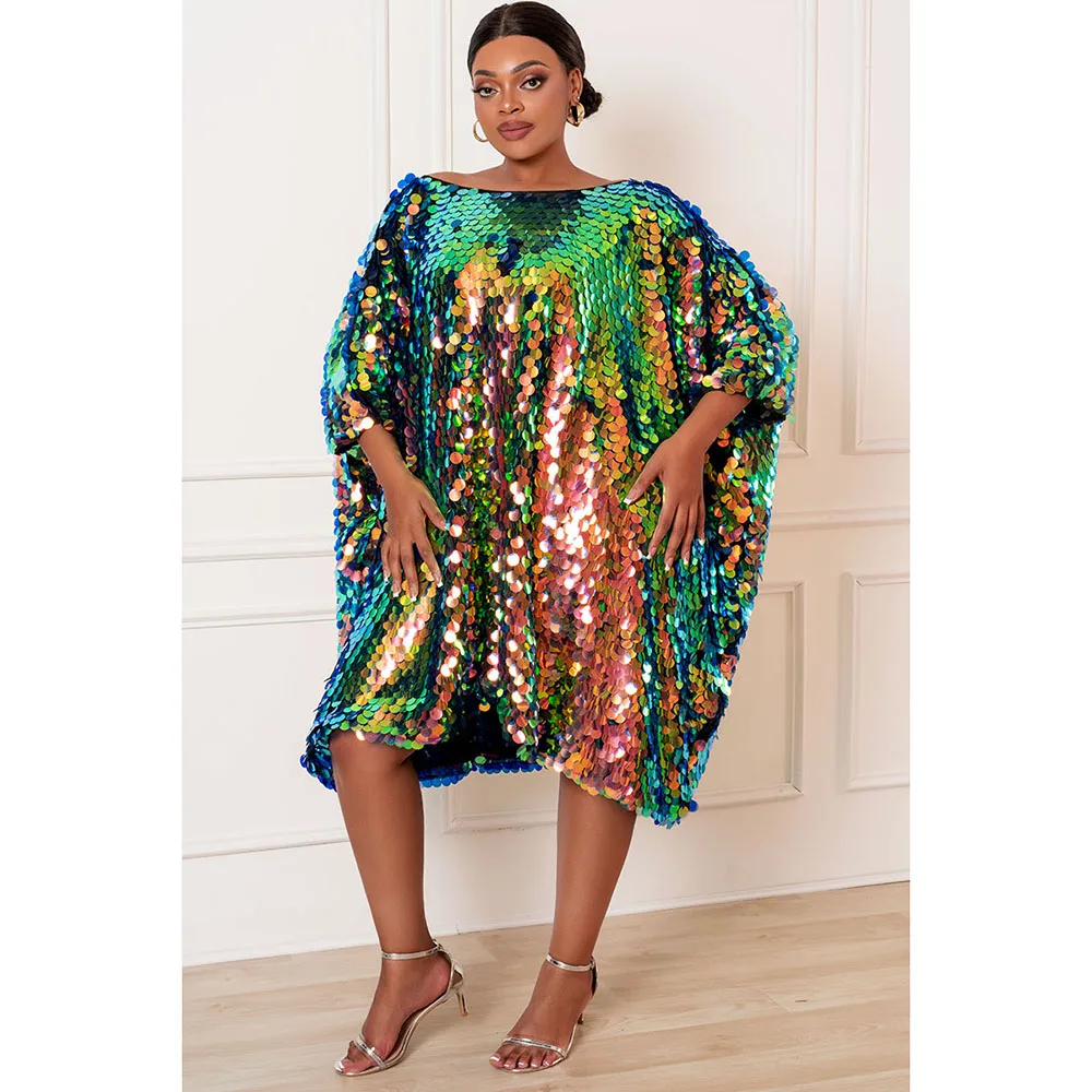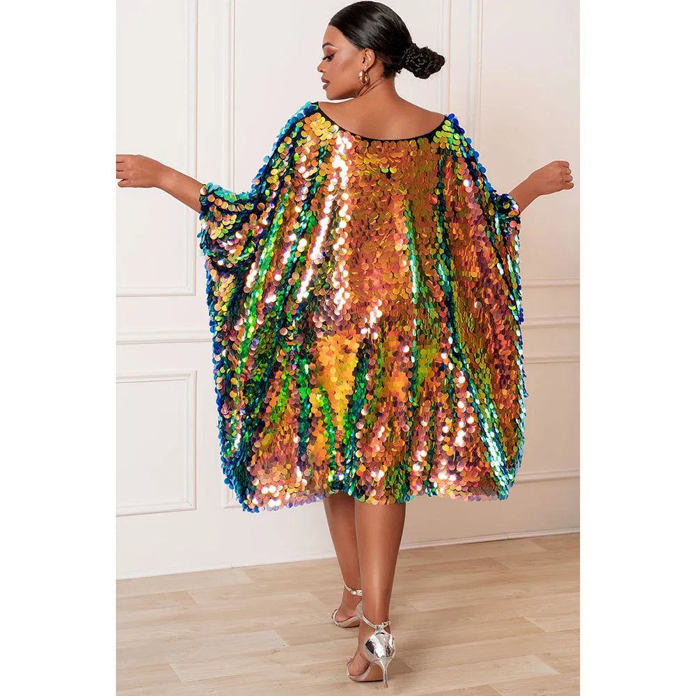 Plus Size Gold Sequin Mini Dress – One Shoulder Batwing Sleeve Party Outfit