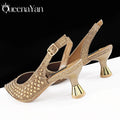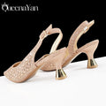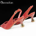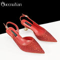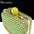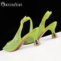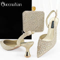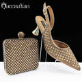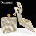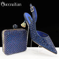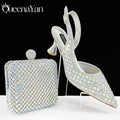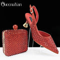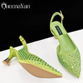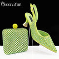 Queena Yan Italian Design Green Rhinestone Shoes & Bag Set – Women’s Pointed Toe High Heels for Parties