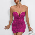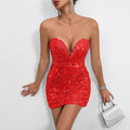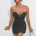 Sequin Deep V Bodycon Dress – Sexy Tube Top Glitter Mini