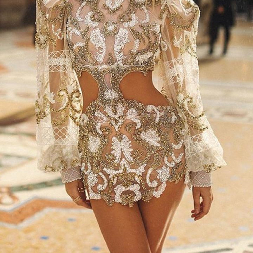 Sequin Long Sleeve Short Dress