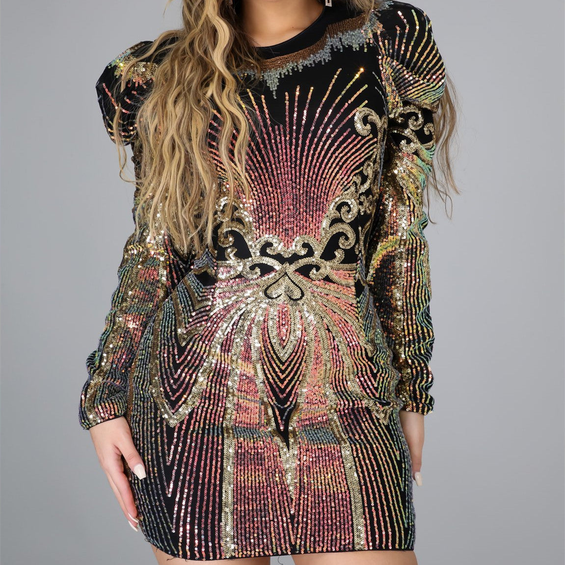 Sequin Party Sexy Zipper Bag Hip A-line Dress Women