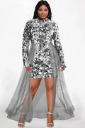 Sequin Plus Size Party Dress – Women’s Long Sleeve Mesh Hem Slim Mini Clubwear
