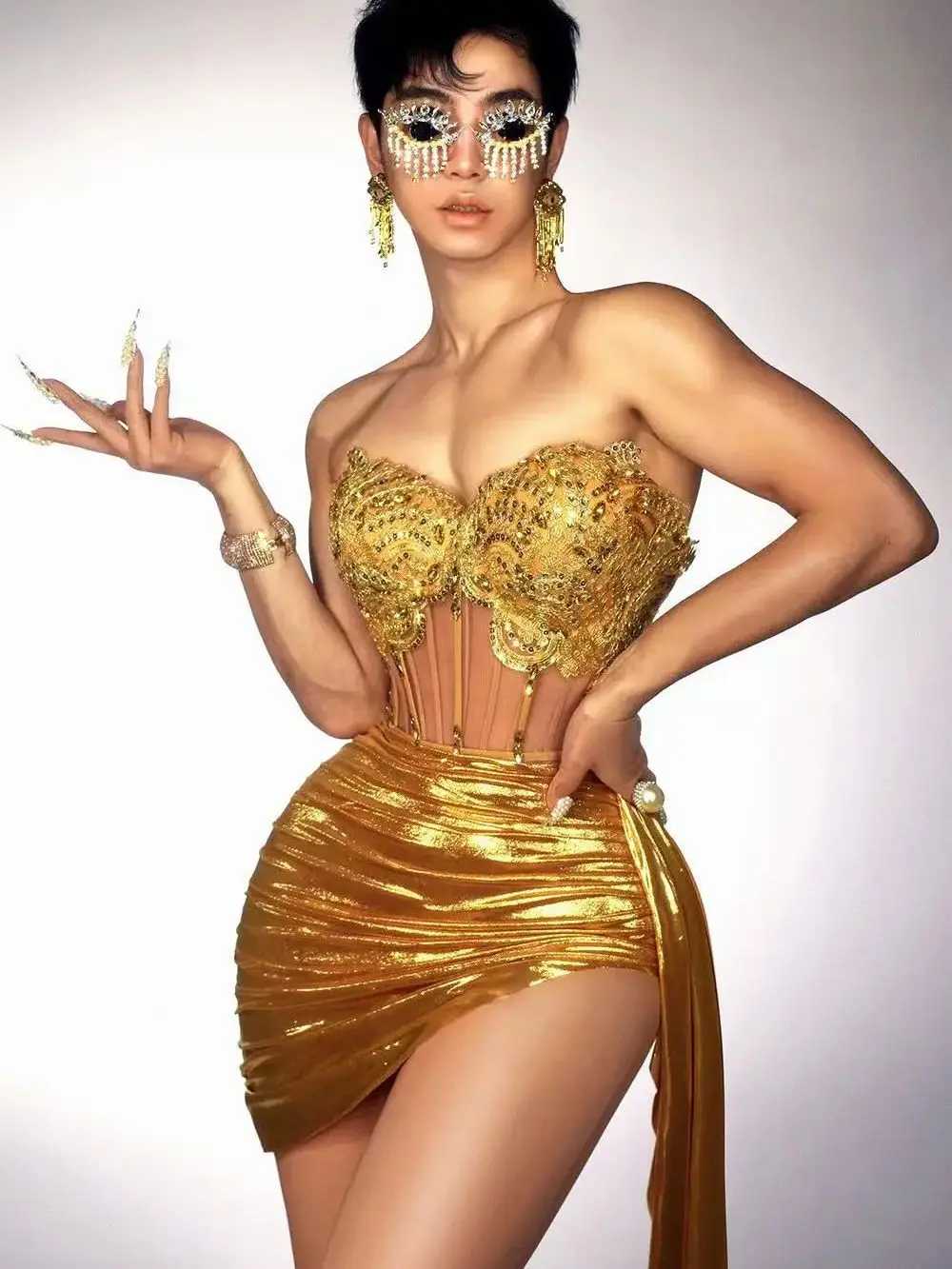 African Birthday Party Dress For Women Luxury 2023 Gold Rheinstone Beading Short Prom Gowns Night Club Outfit Vestidos De Gala