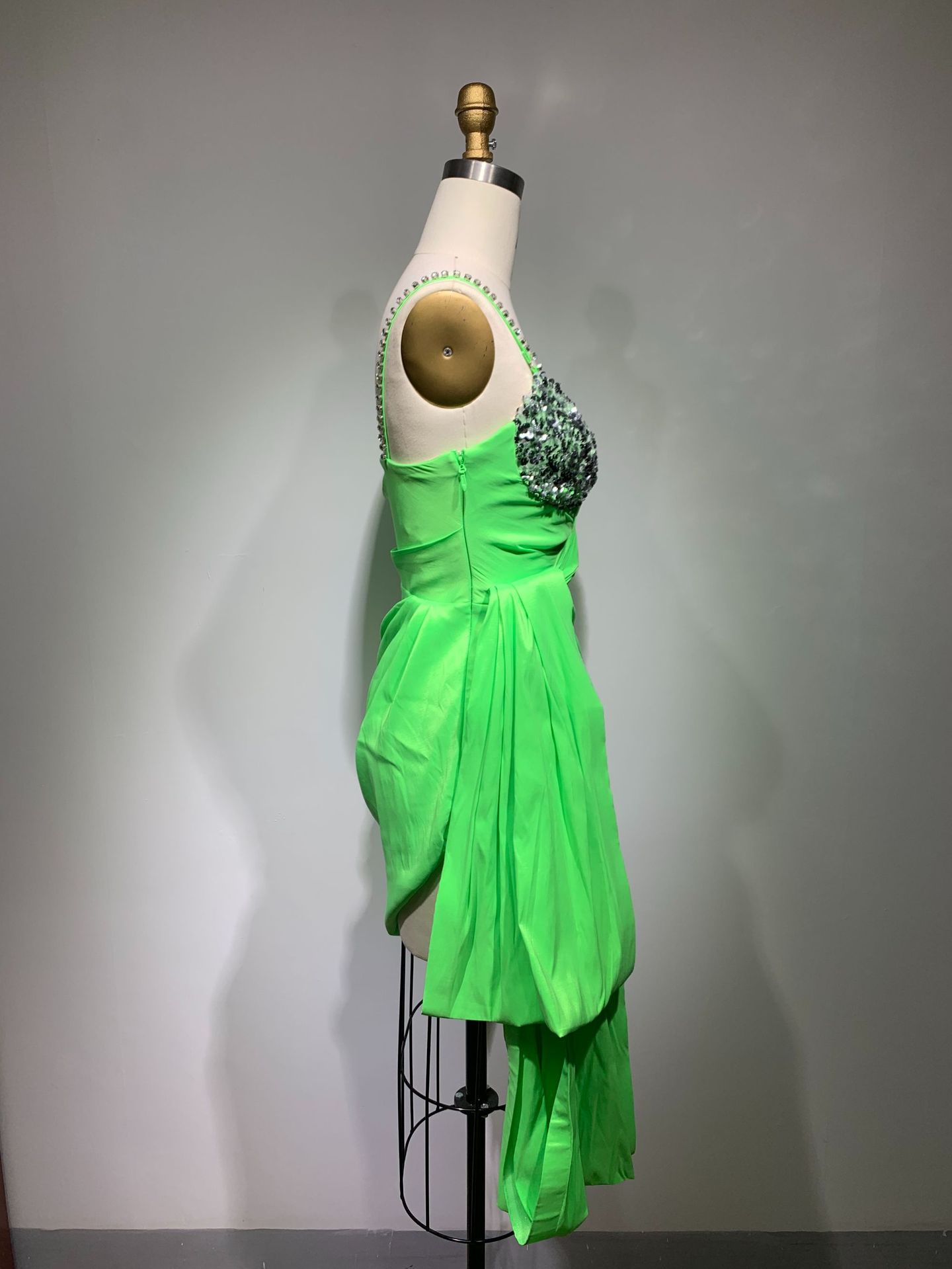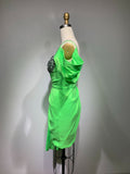 Slimming Green Diamond Strap Tight Pleated Elegant Mini Dress