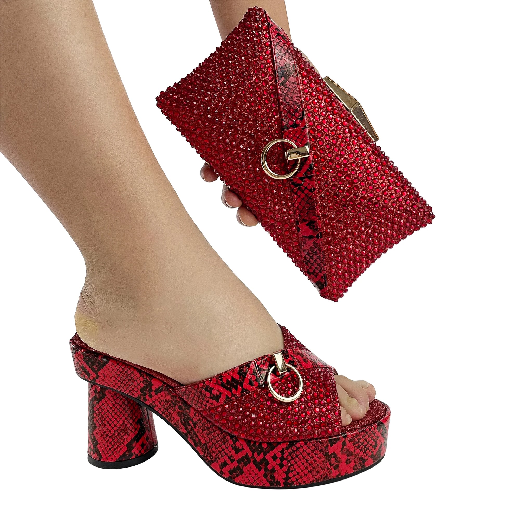 Snake Print Glitter Shoe & Bag Set – Designer Party Heels