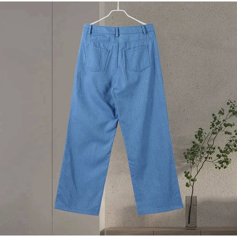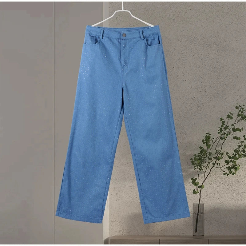 The long pants are tailored to fit the leg lines, exuding elegance as you walk. Denim sets in different colors meet diverse style needs.