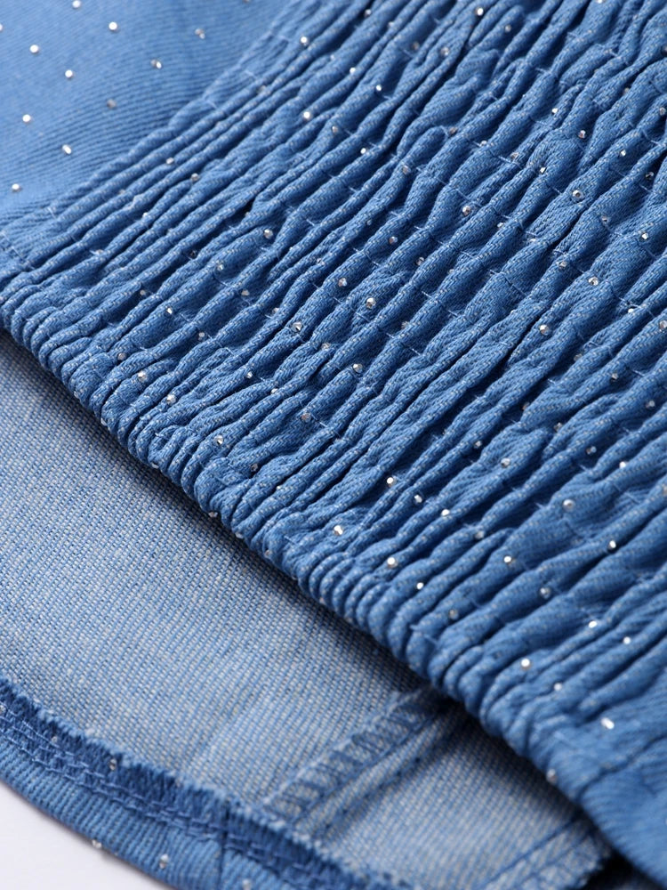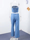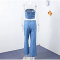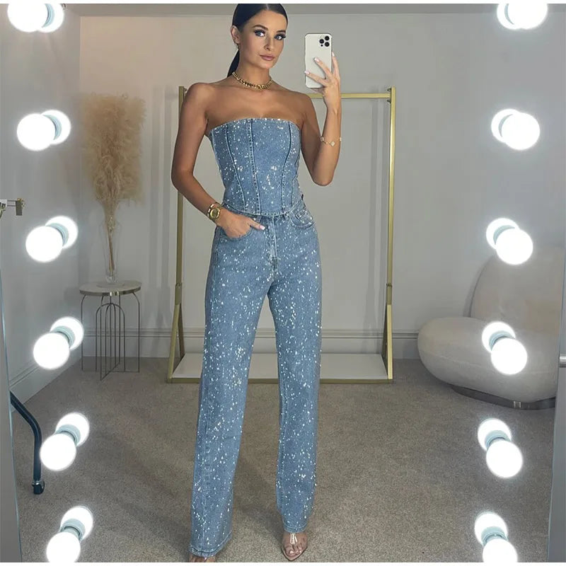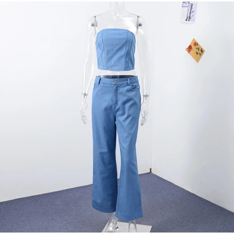 Sparkling Rhinestone Denim Set – Corset Crop Top & Slim Jeans, Glam Cowgirl Clubwear