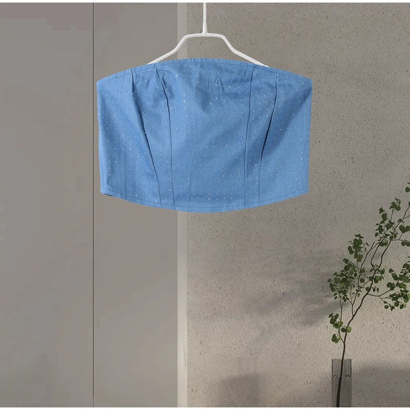 The strapless top is ingeniously designed to showcase charming shoulder, neck, and collarbone lines, highlighting a sexy allure. The unique corset - style element at the waist not only trims the body curves but also adds a touch of vintage charm.