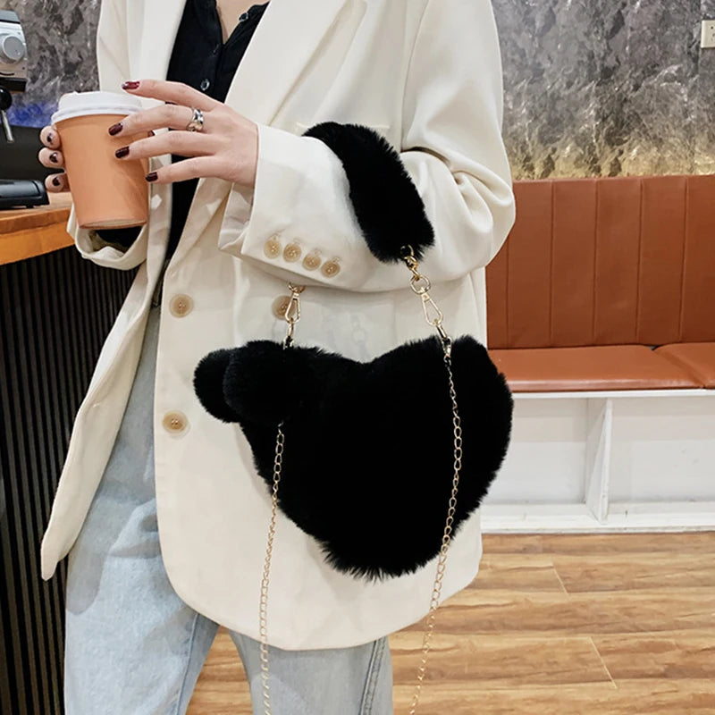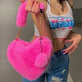 Trendy Women’s Plush Heart-Shaped Handbag – Soft Solid Color Shoulder Bag