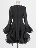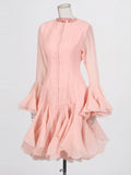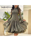 TWOTWINSTYLE Solid Spliced Button Slimming Dresses For Women O Neck Long Sleeve High Waist Patchwork Ruffles Female Fashion New