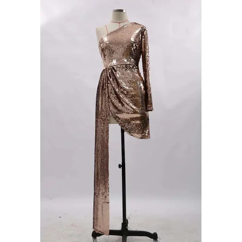 Ueteey Luxury Gold Ruffle Sequin Women Evening Dresses