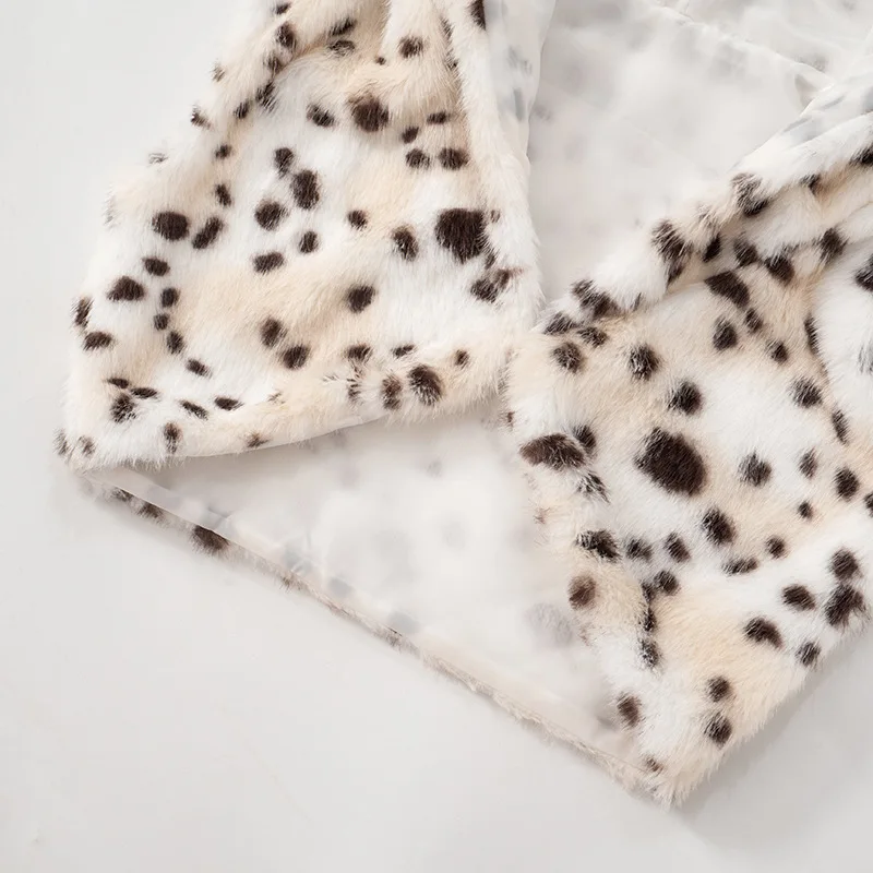 Unisex Furry Faux Fur Hooded Hat – Leopard Print Warm Scarf for Halloween, Cosplay & Winter Fashion