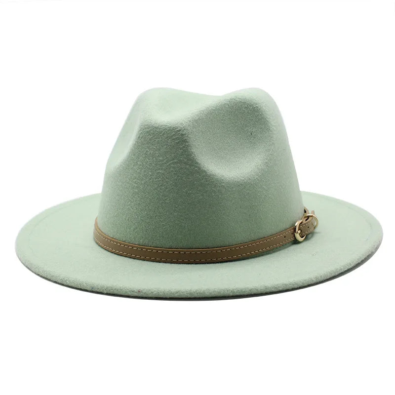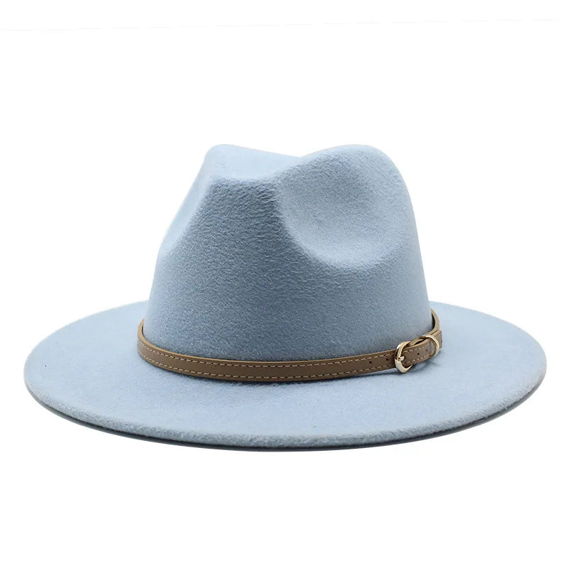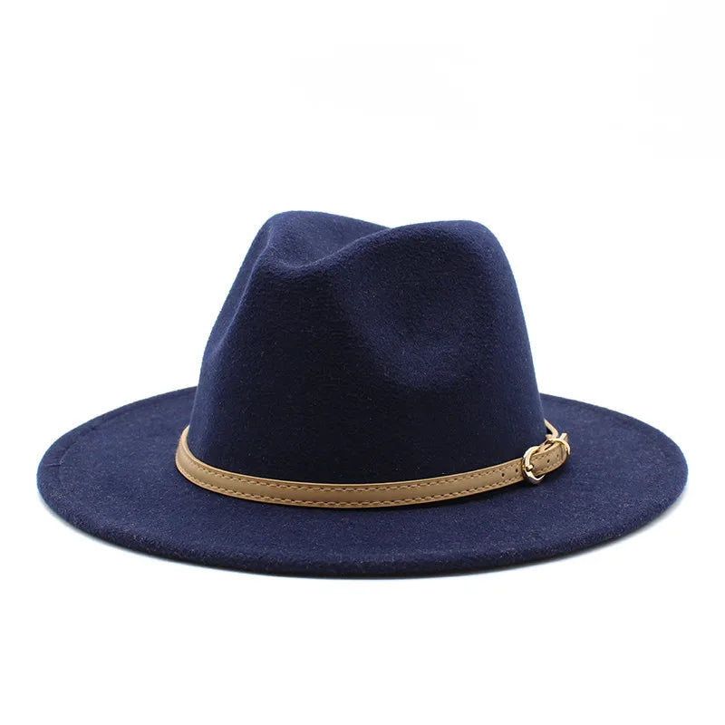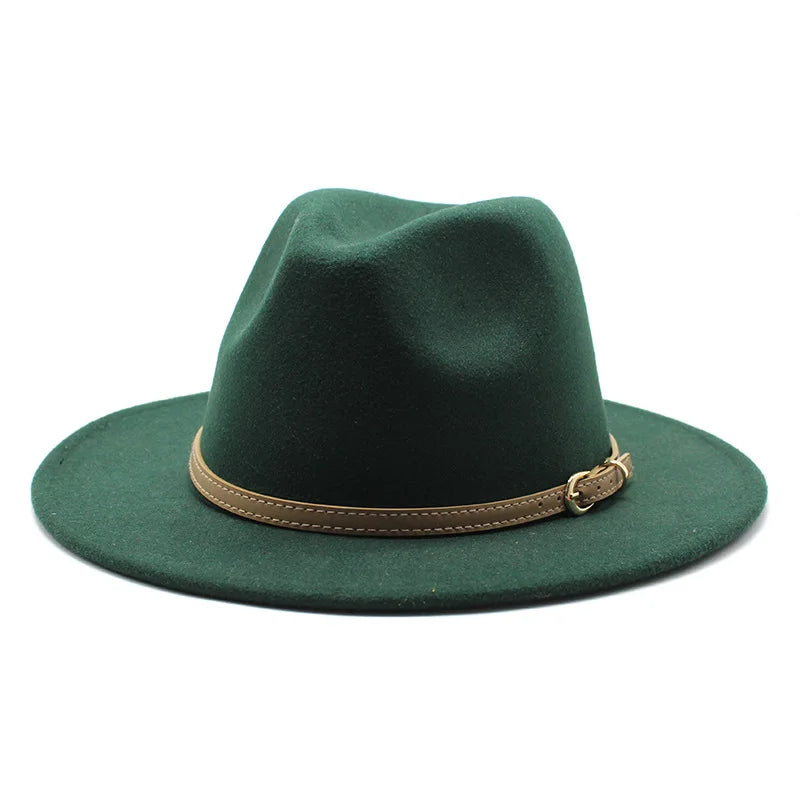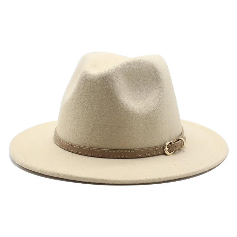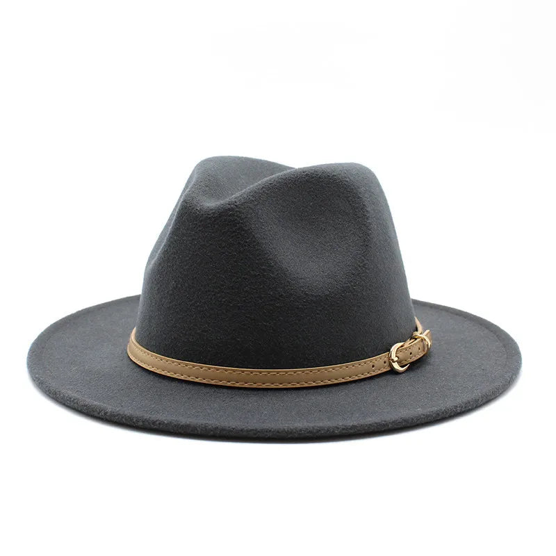 Unisex Wide Brim Fedora Hat – Classic Khaki & Black Formal Winter Hat with Belt Band
