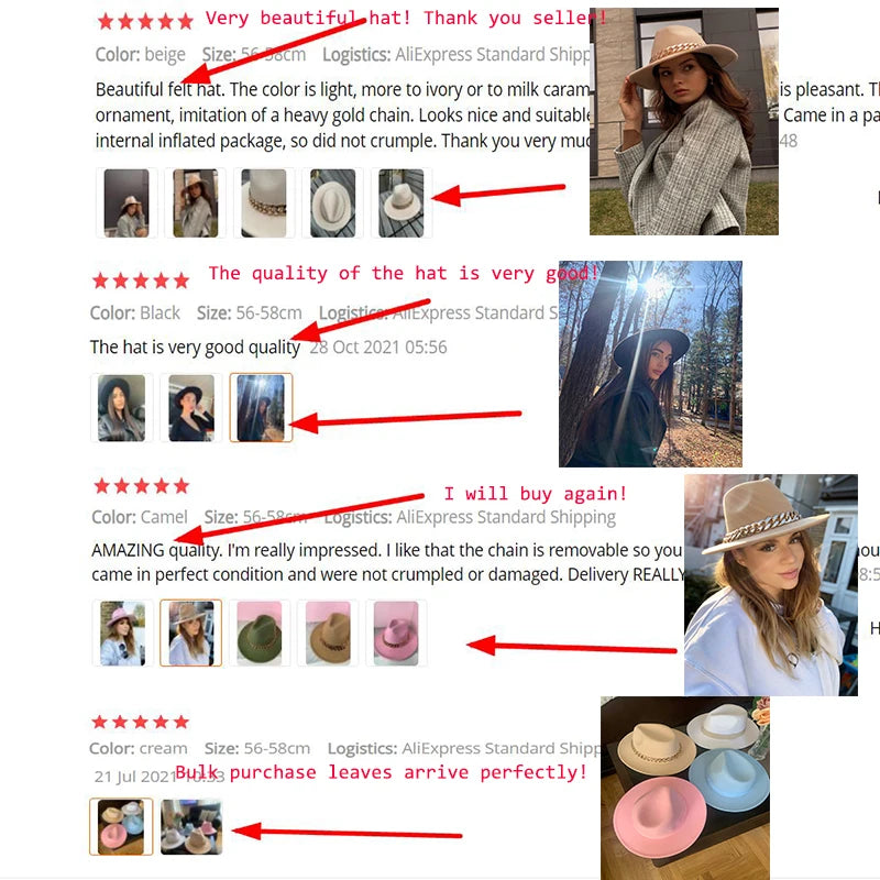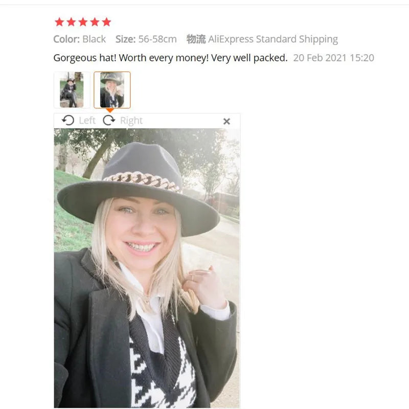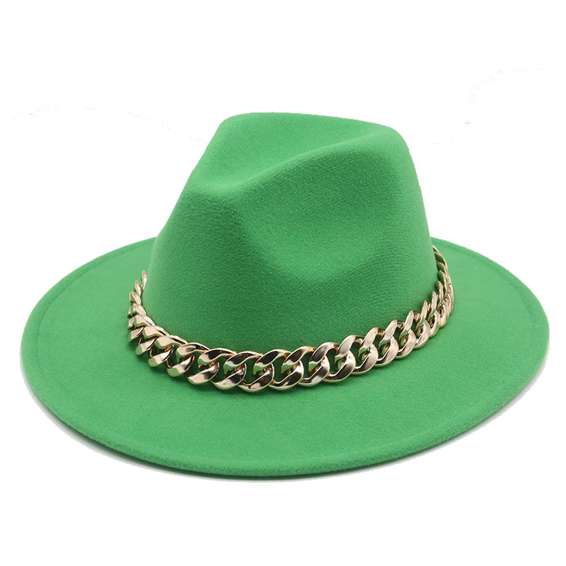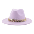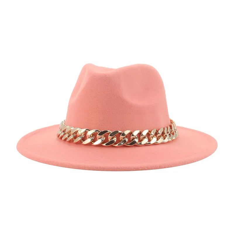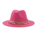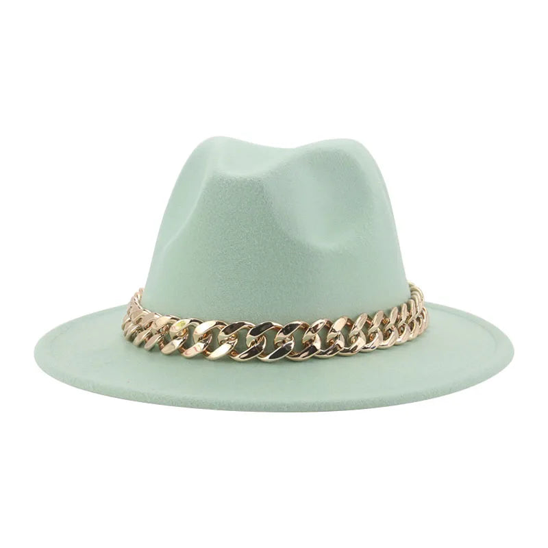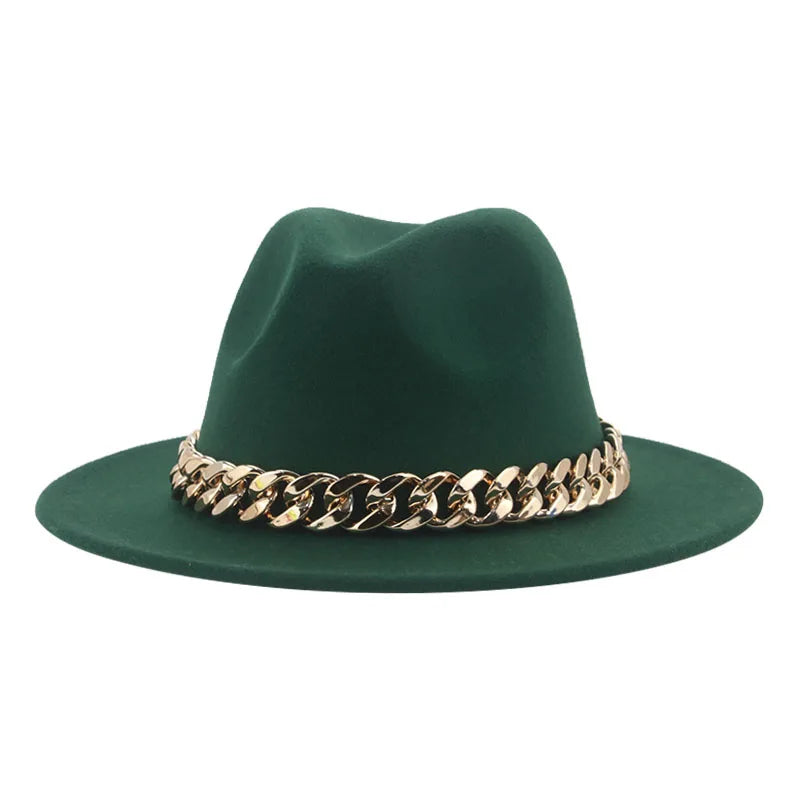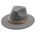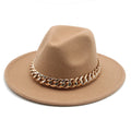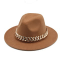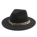 Unisex Wide Brim Fedora Hat – Luxury Felt Panama Jazz Cap with Gold Chain Band for Autumn & Winter