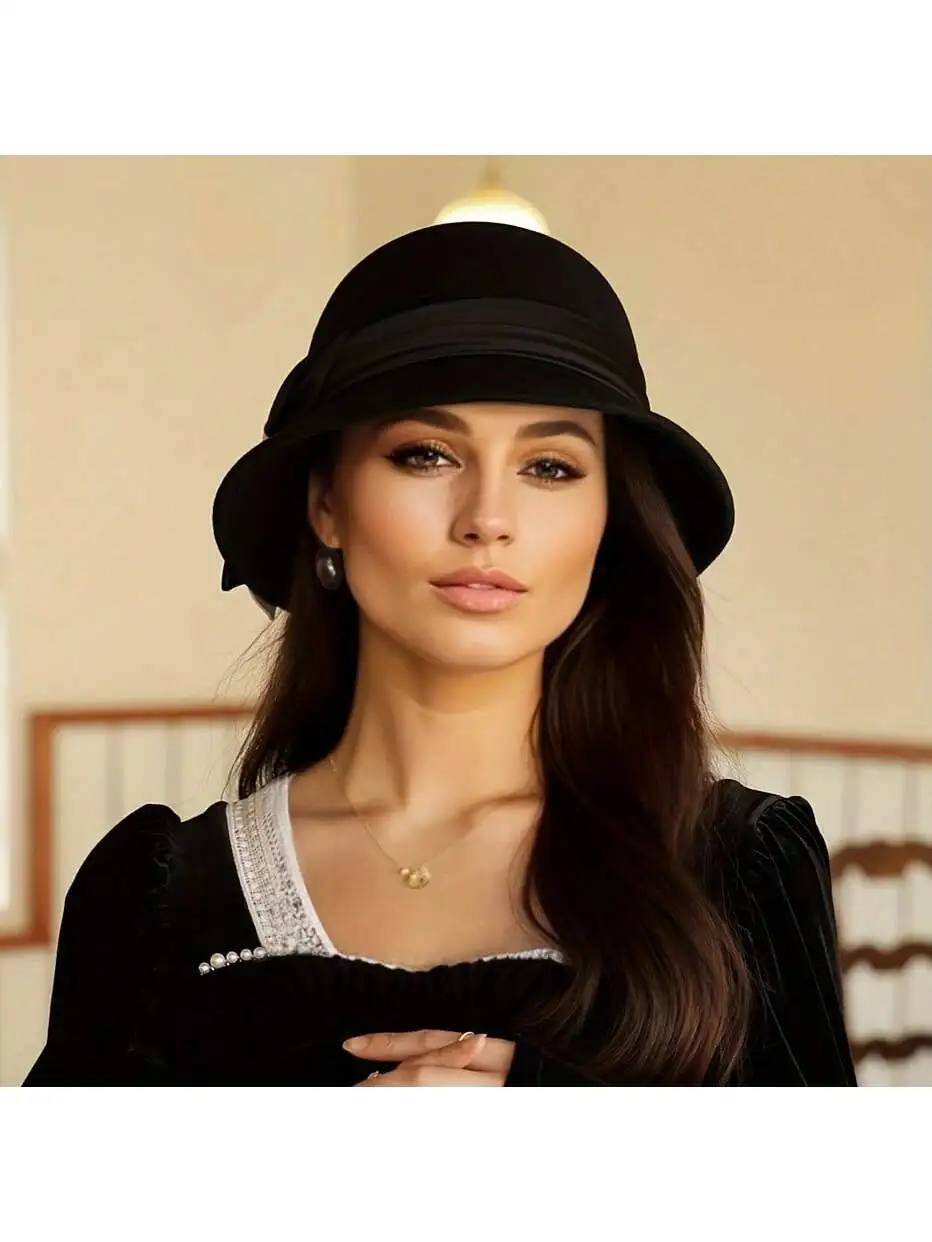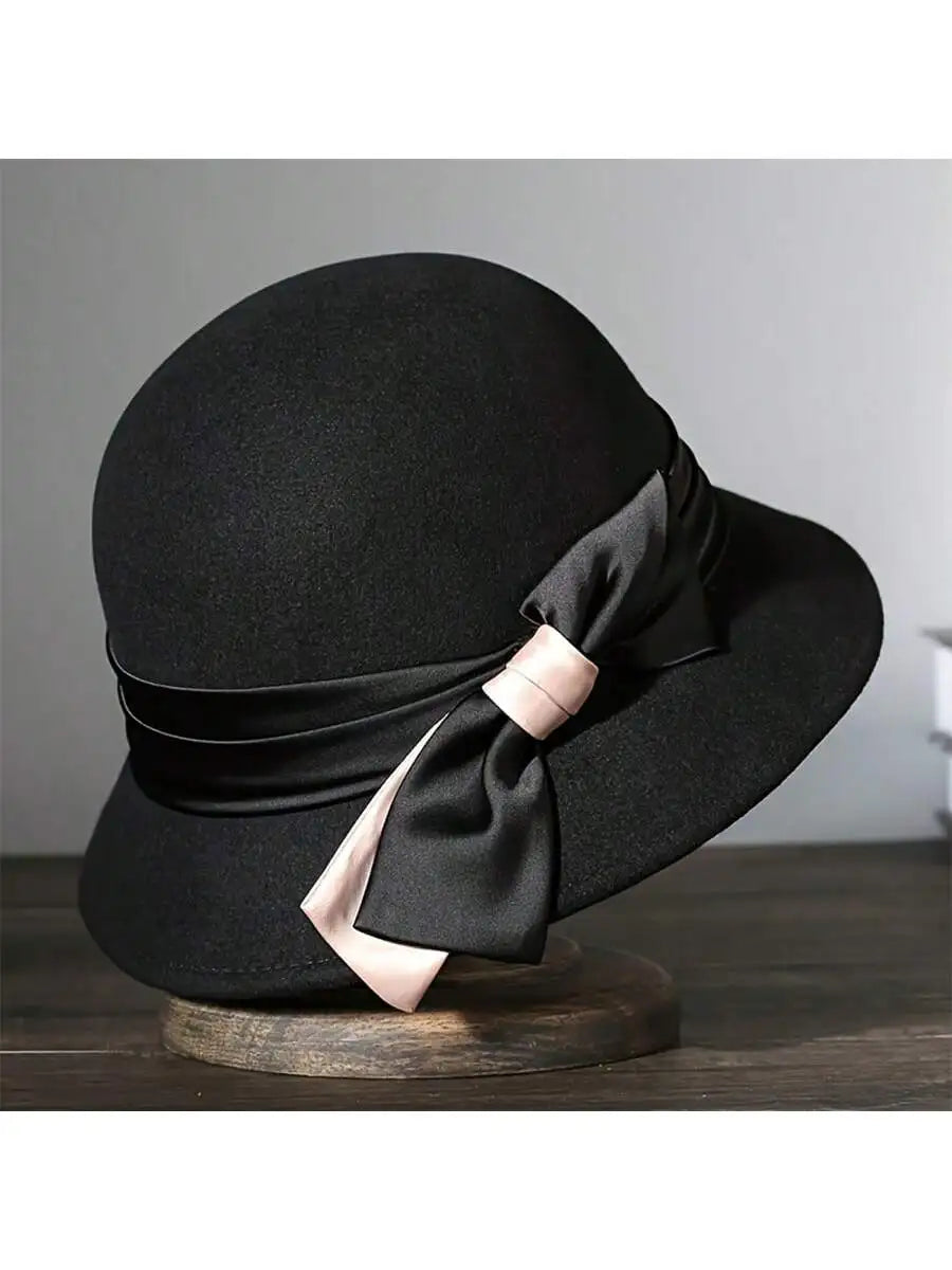 Women’s Autumn/Winter Wool Fisherman Hat – Trendy Japanese Retro Black Warm Pot Hat
