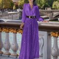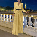 Women’s Deep V Neck Sequin Jumpsuit – Slim Belt Wide-Leg Elegant Party Outfit
