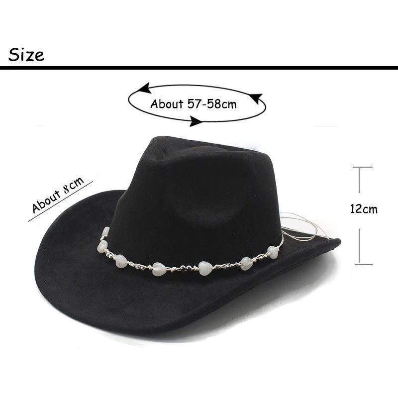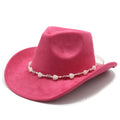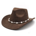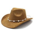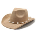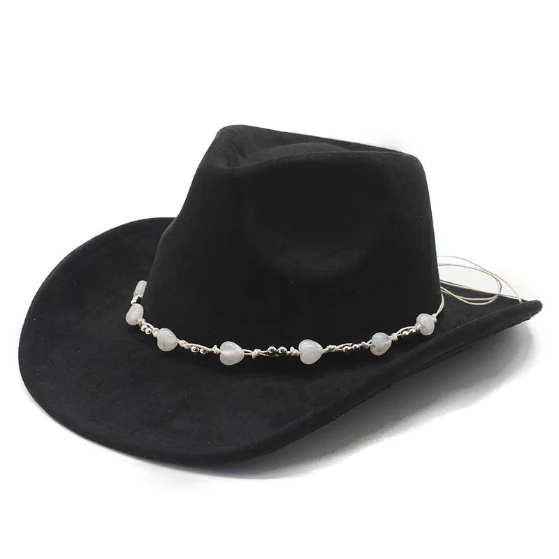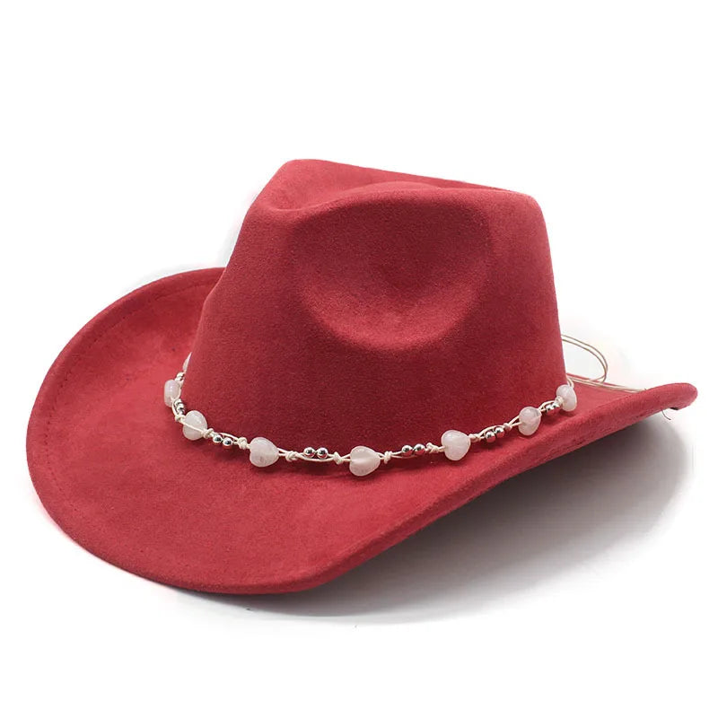 Women’s Faux Suede Cowboy Hat – Elegant Western Style with Curved Brim & White Heart Band