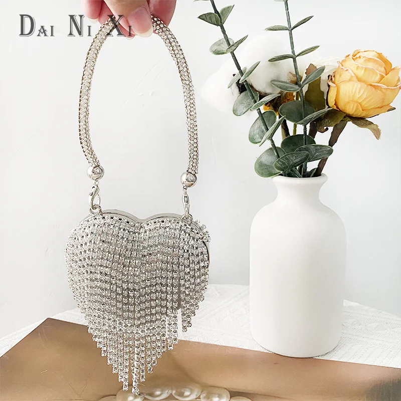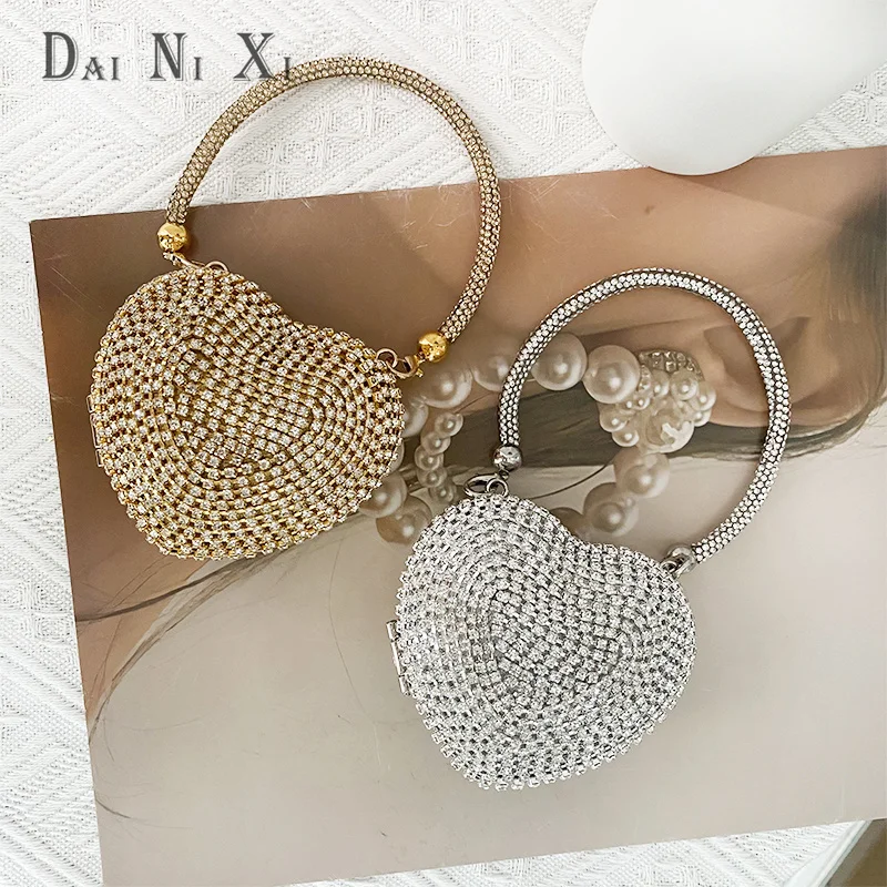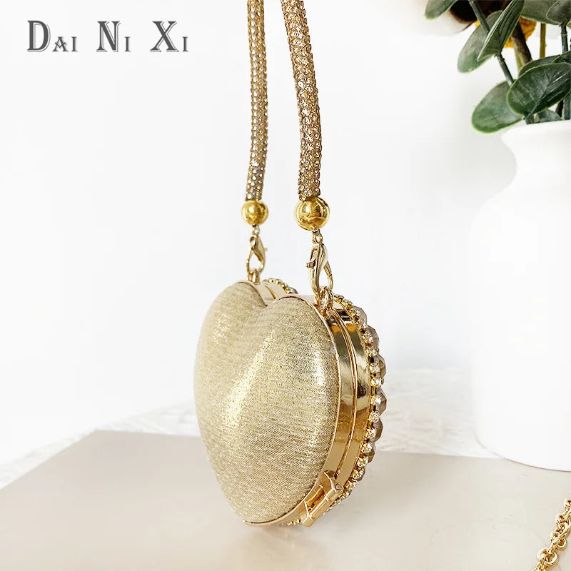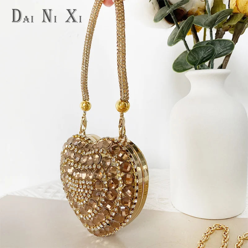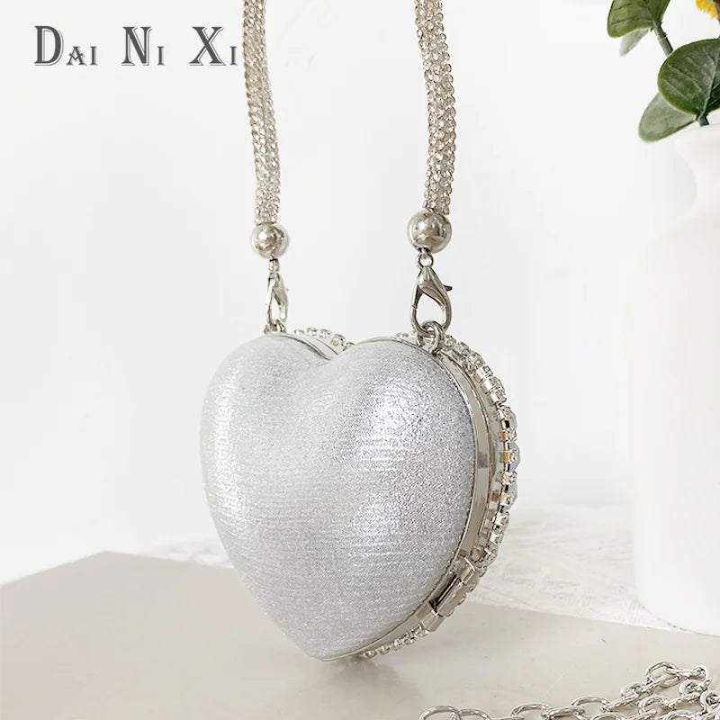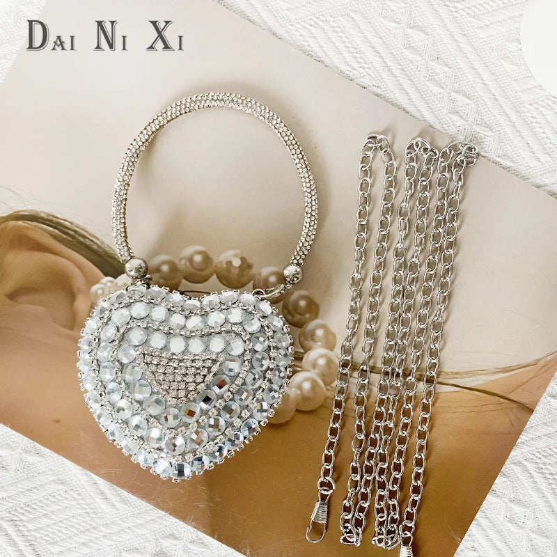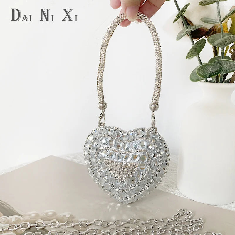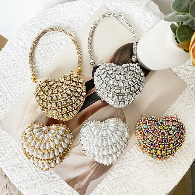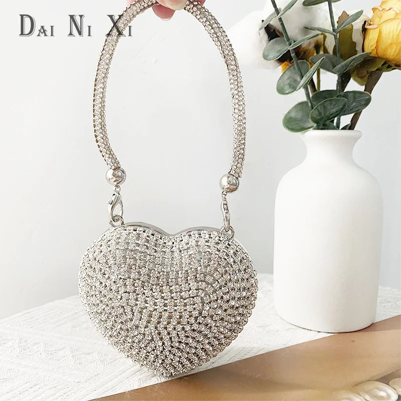 Women’s Heart Shaped Clutch – Luxury Rhinestone Diamond Evening Purse