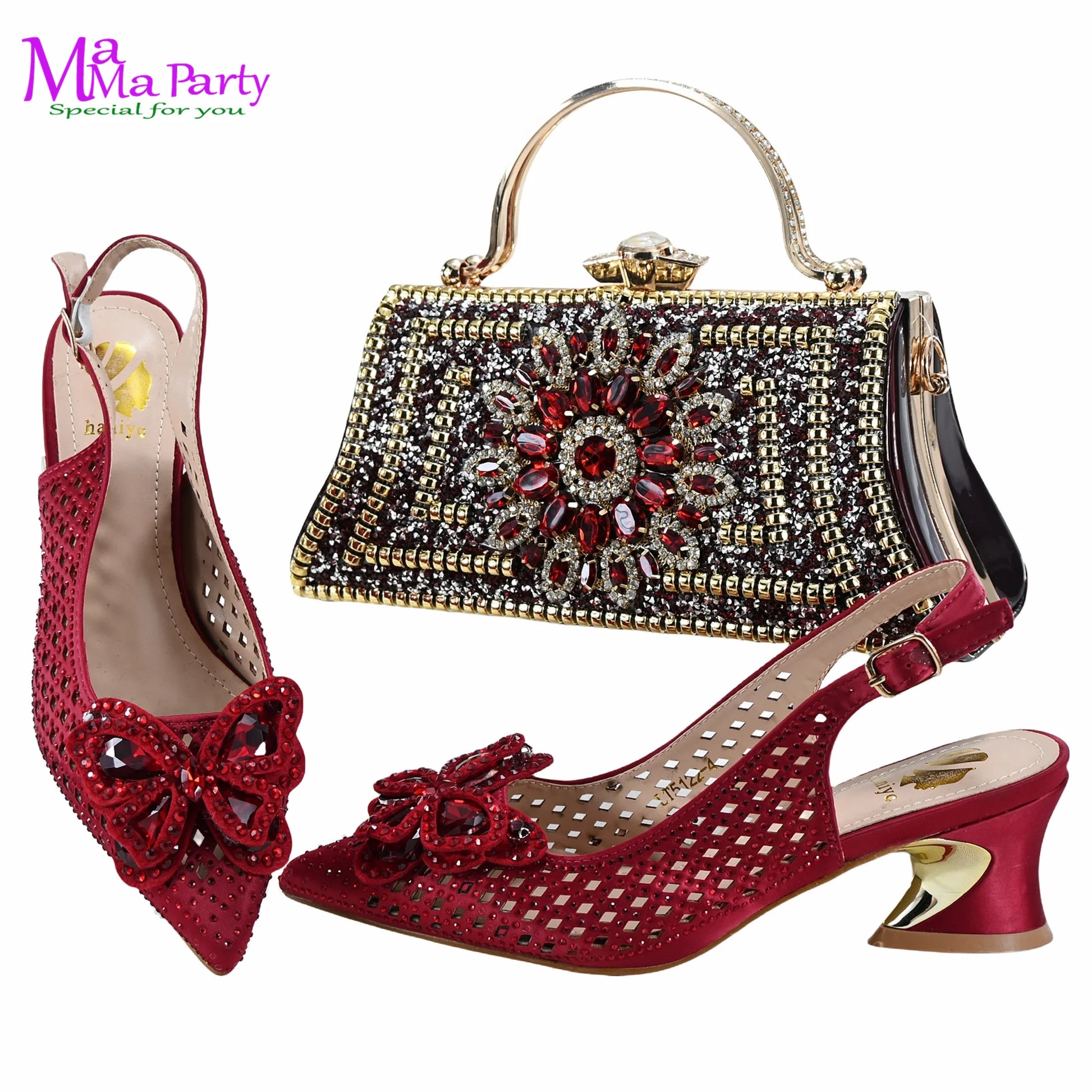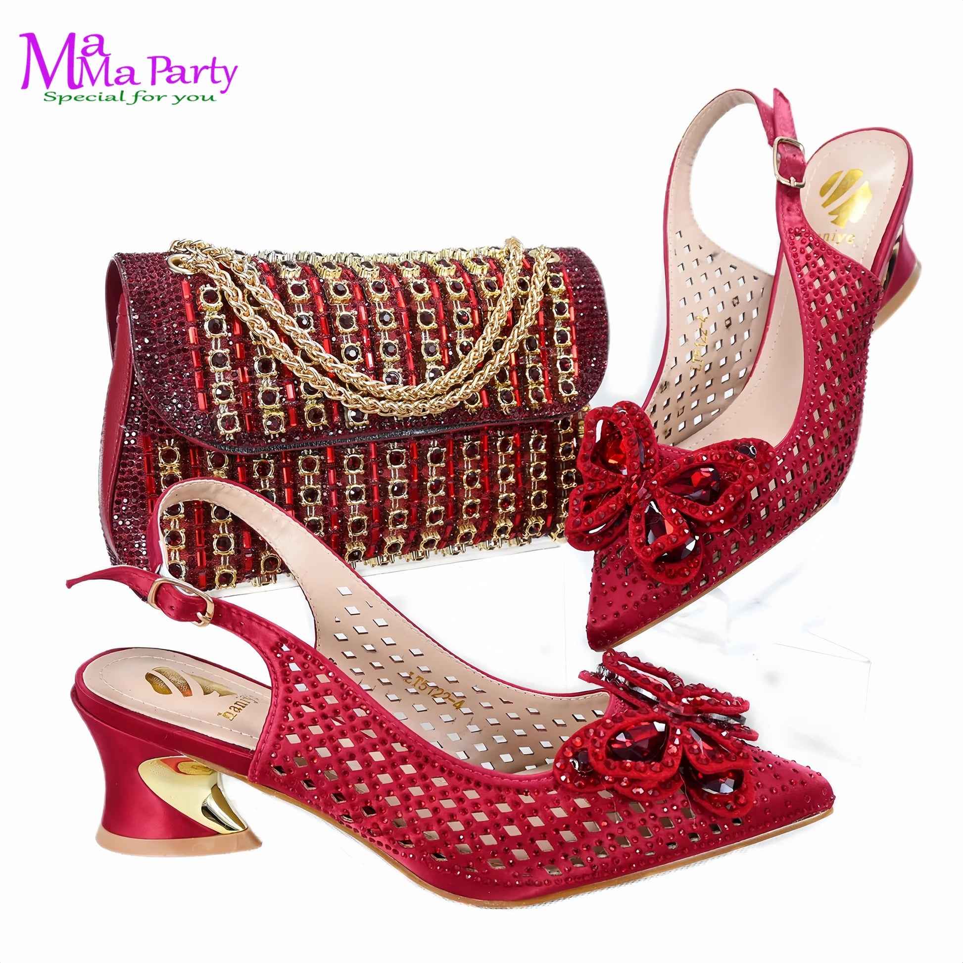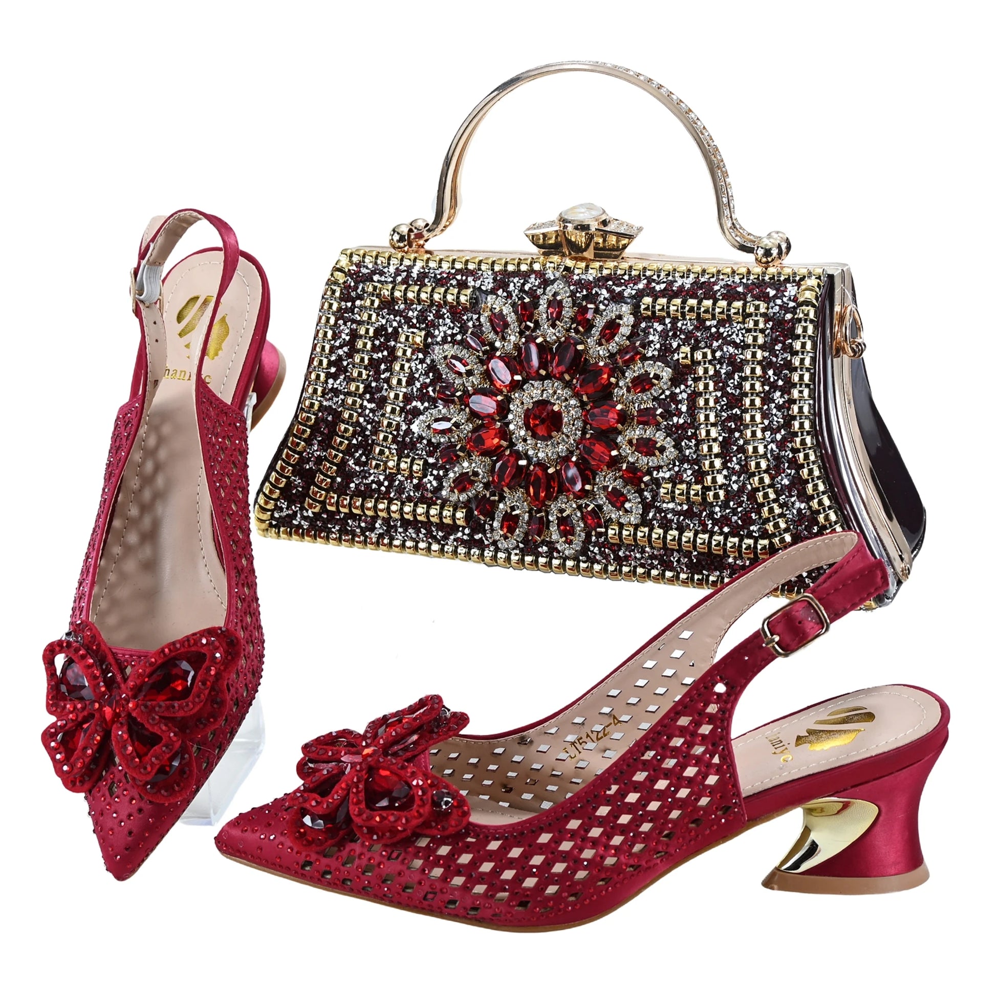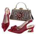 Women’s Italian Shoes & Bag Set – Wine Color Low Heels, Comfortable Wedding Shoes