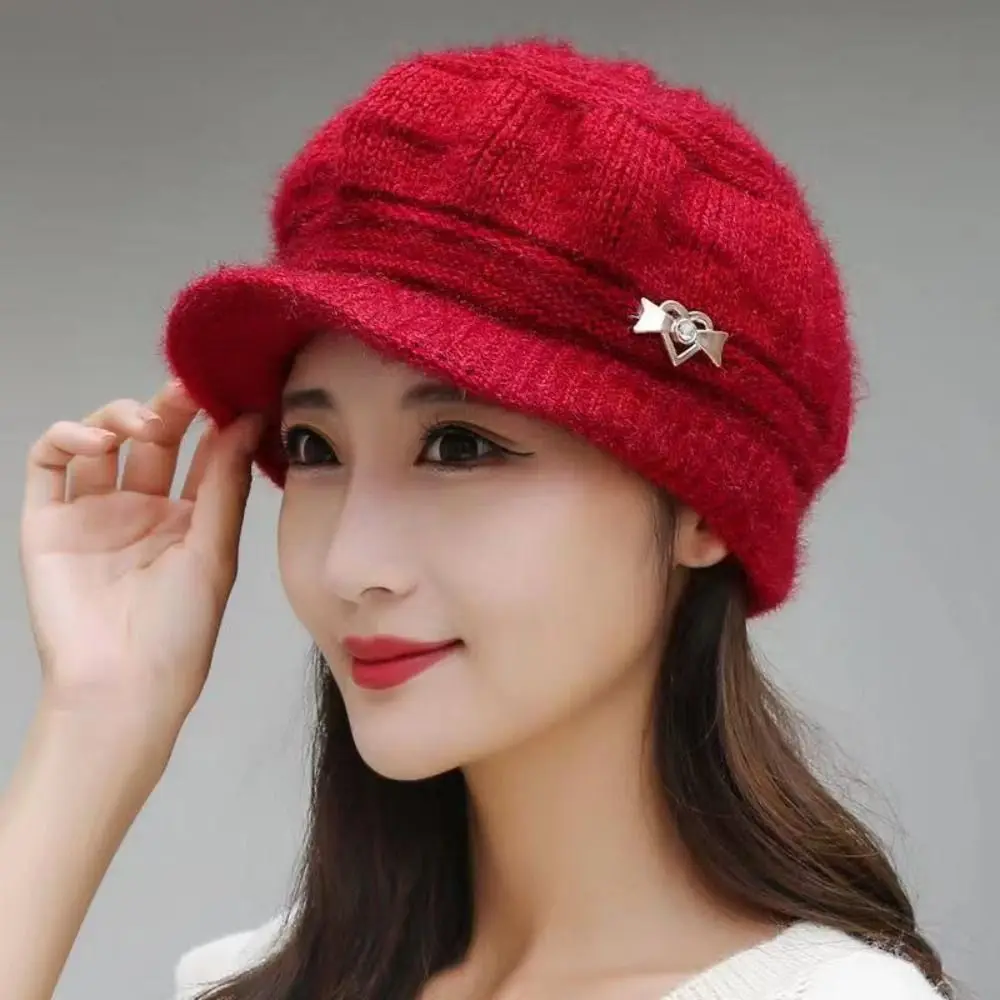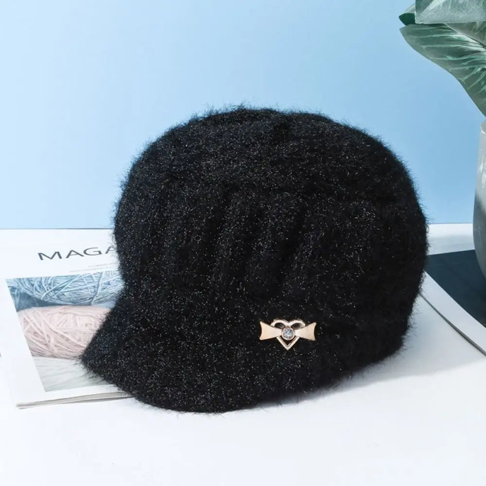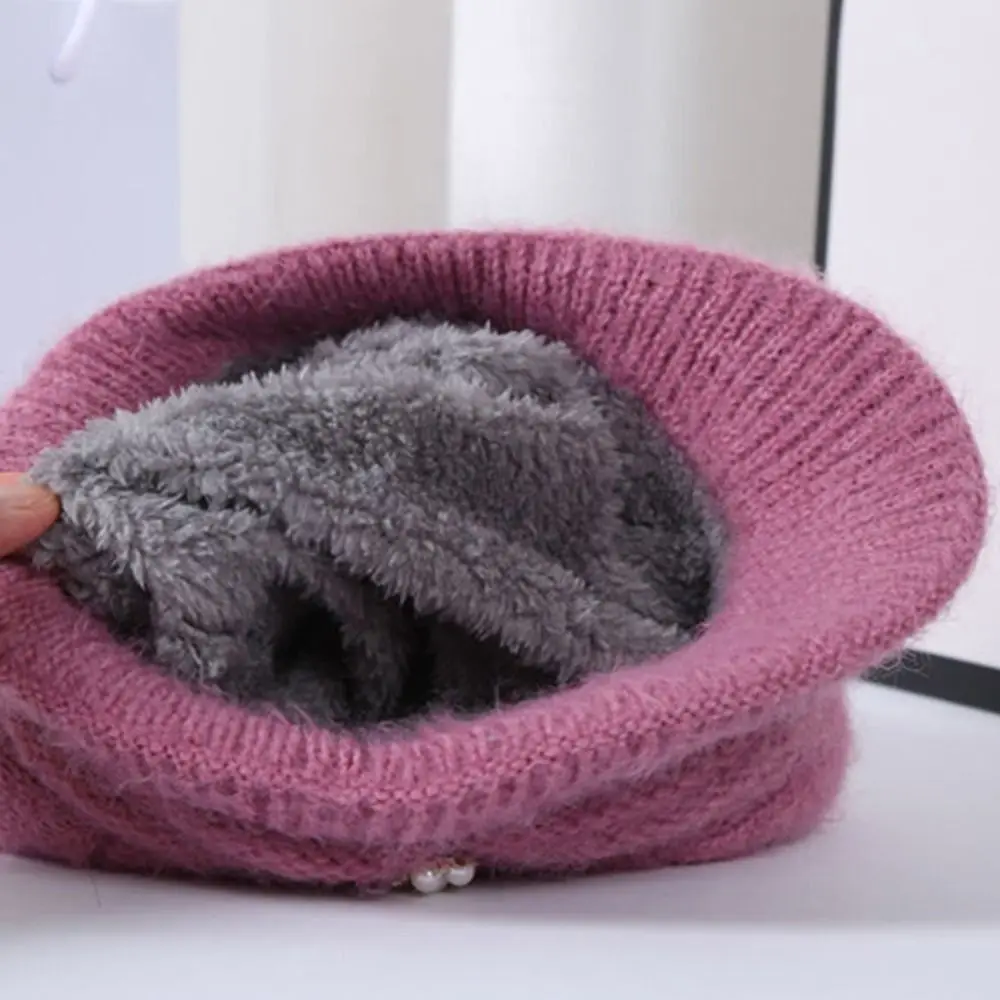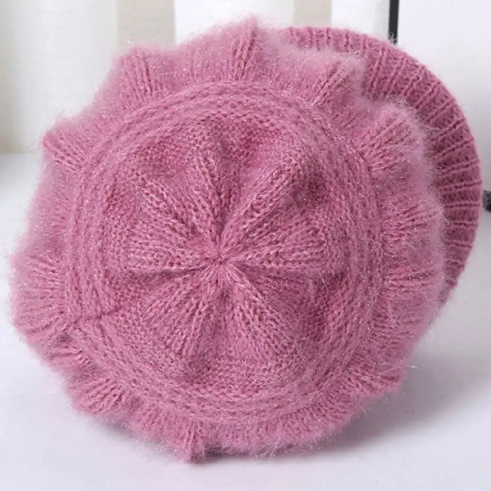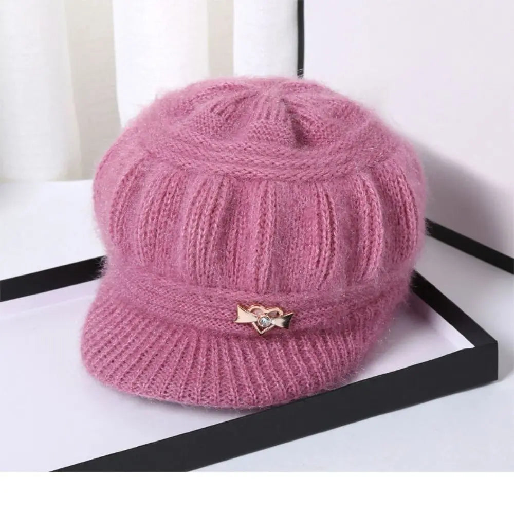 Women’s Knitted Pumpkin Beret – Windproof Peaked Hat with Ear Guard for Warmth