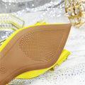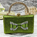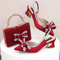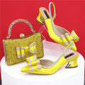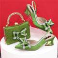 Women’s Medium Heel Olive Green Shoes & Bag Set – Hollow Embroidery Rhinestone Italian Design, Pointed Toe