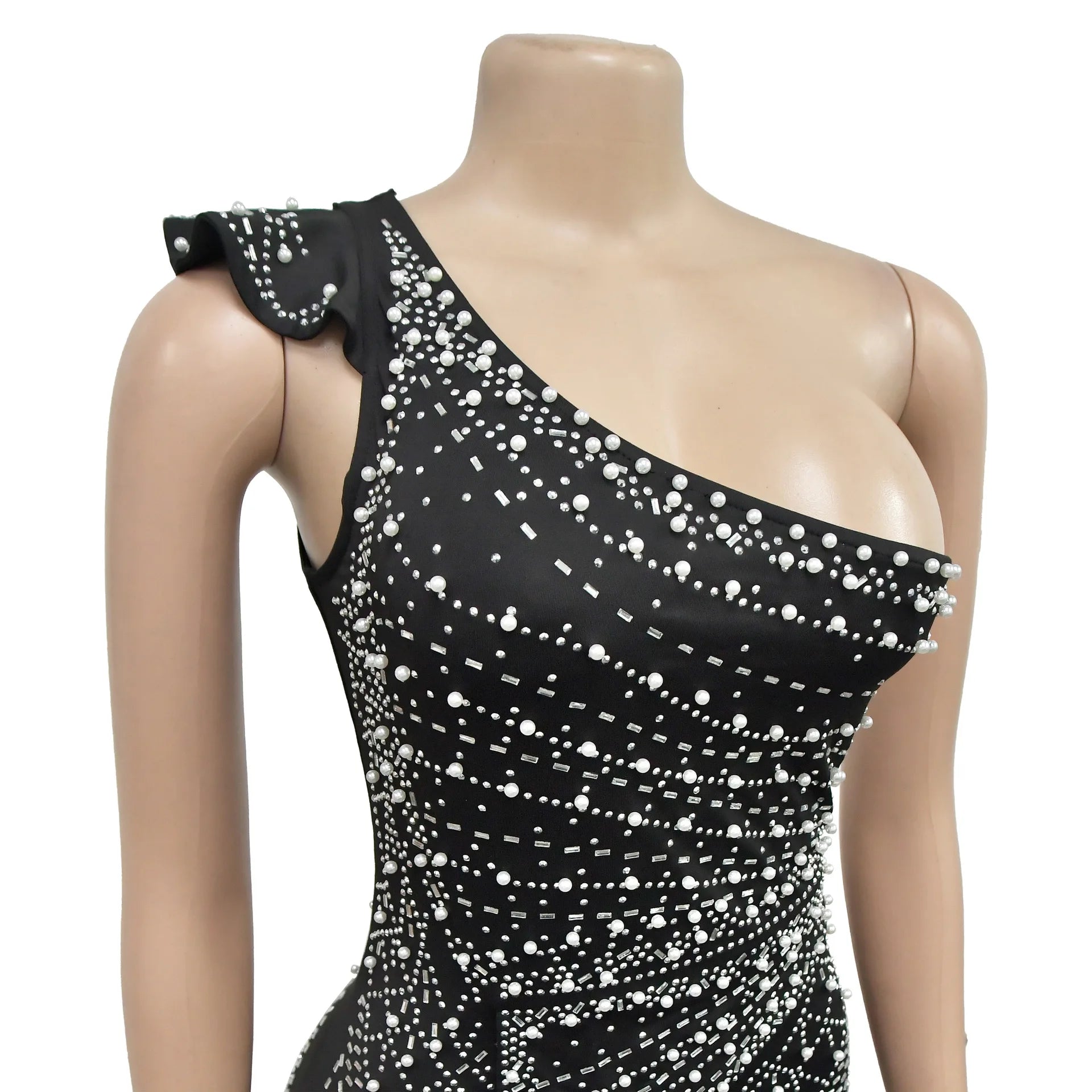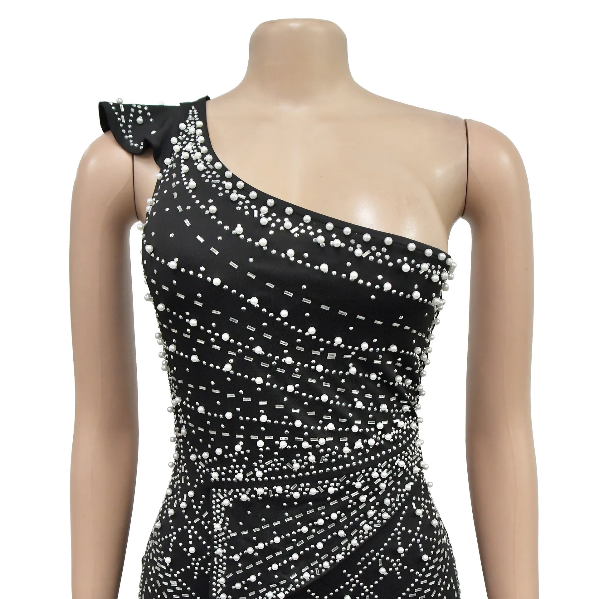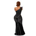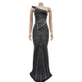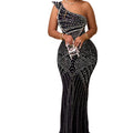 Women’s One-Shoulder Floor-Length Dress – Sexy Slim Fit Sleeveless Party Gown with Skew Collar