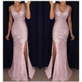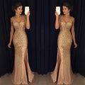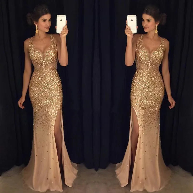 Women’s Sequin Evening Dress 2025 – Sleeveless Mesh Split Hem Mermaid Prom Gown