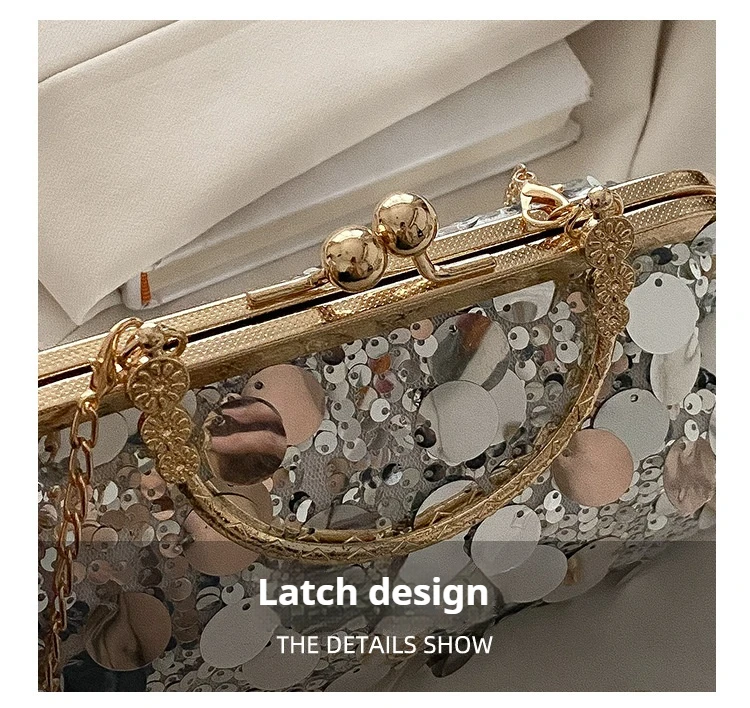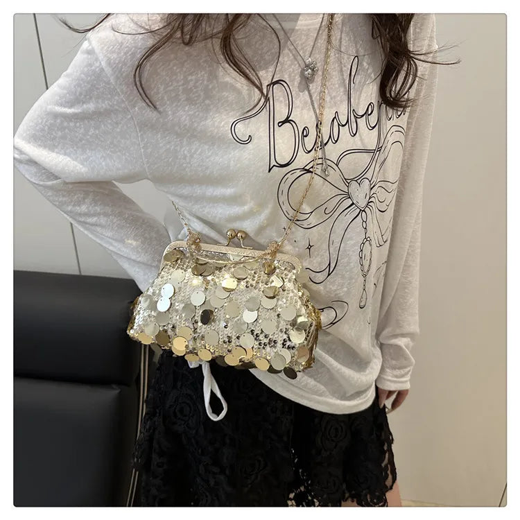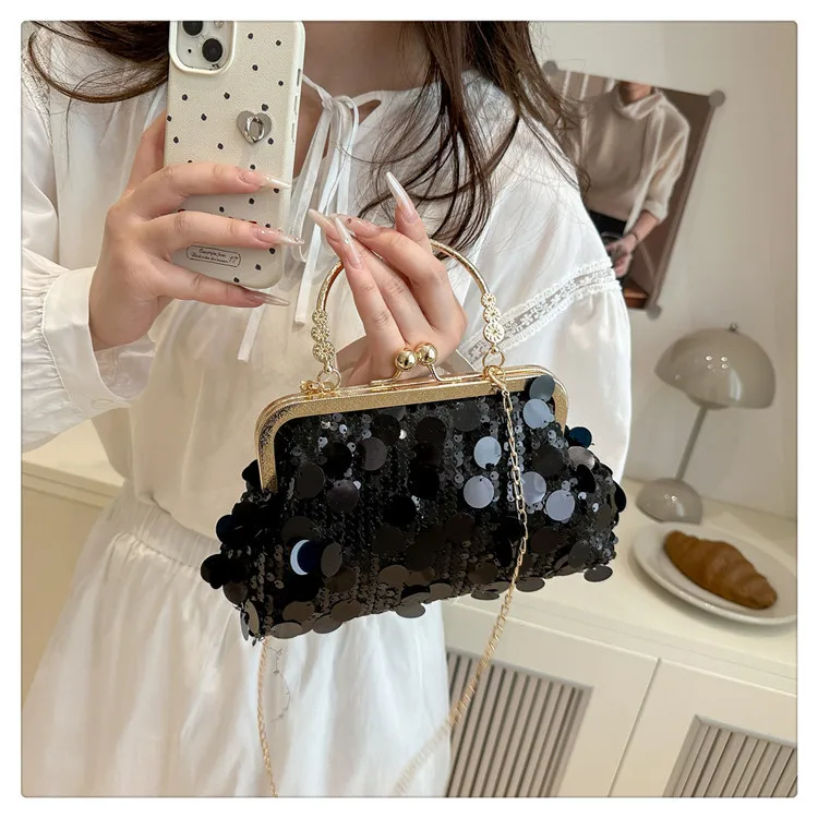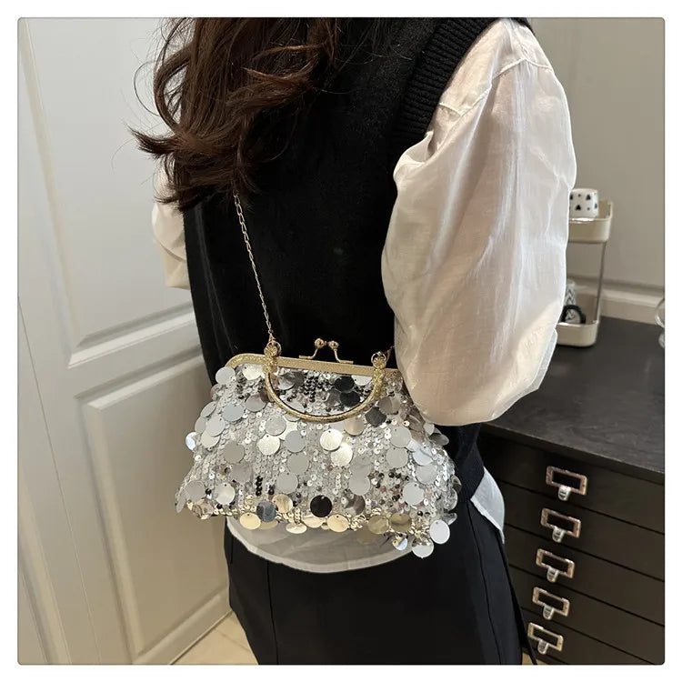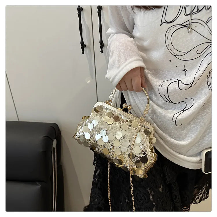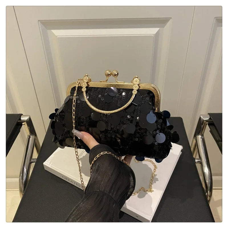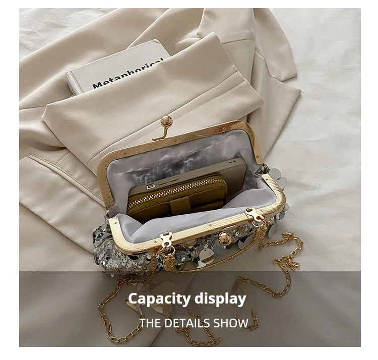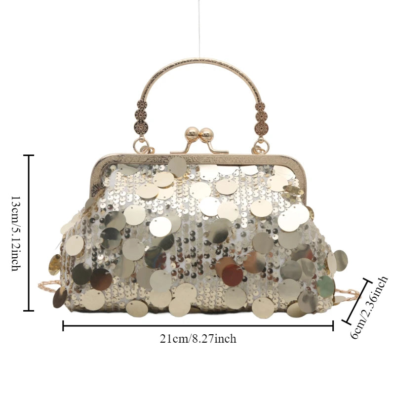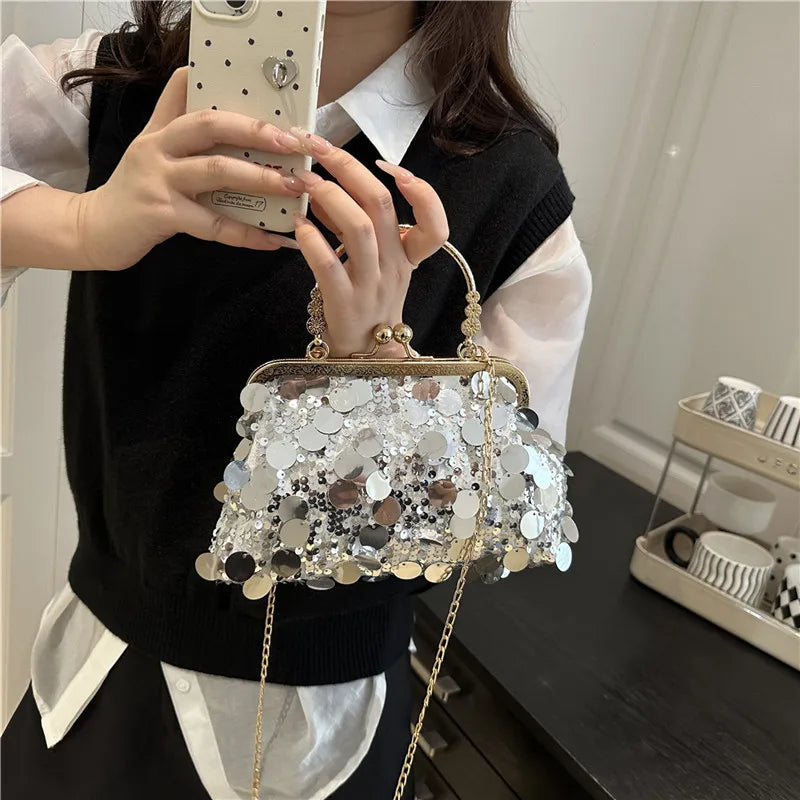 Women’s Sequin Handbag Chain Shoulder & Crossbody Clip Bag for Dinner & Party