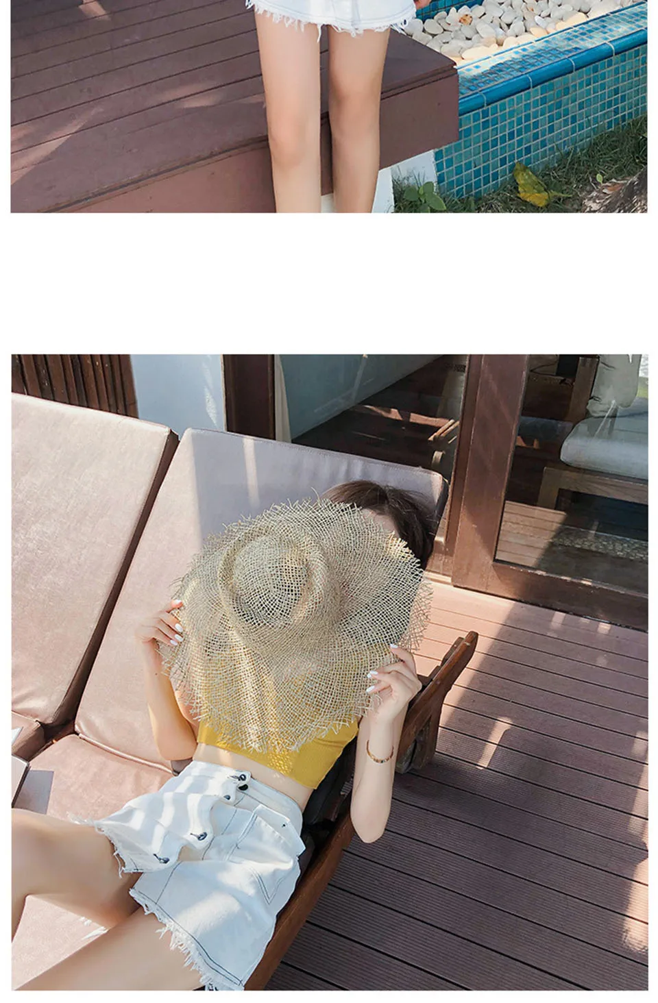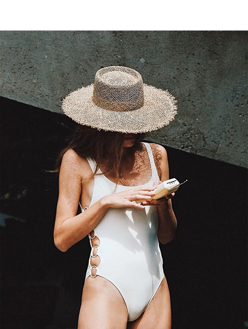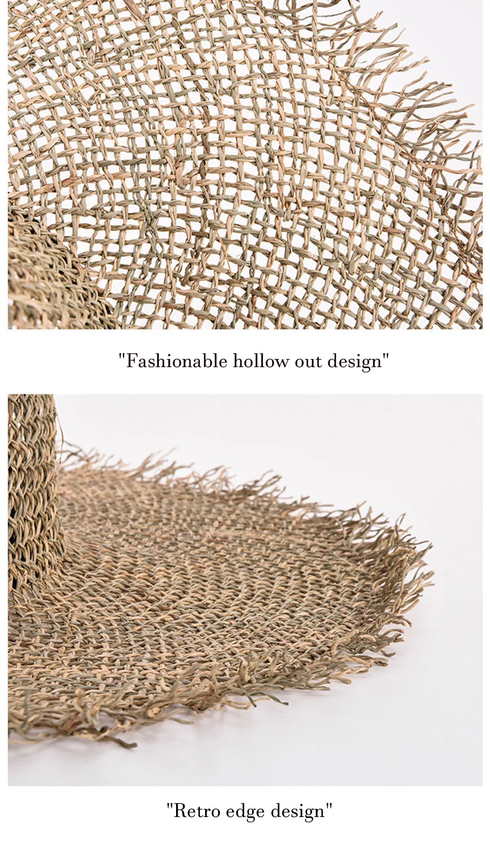 Women’s Summer Retro Raffia Straw Hat – Handwoven Hollow Flat Brim Beach Sun Hat