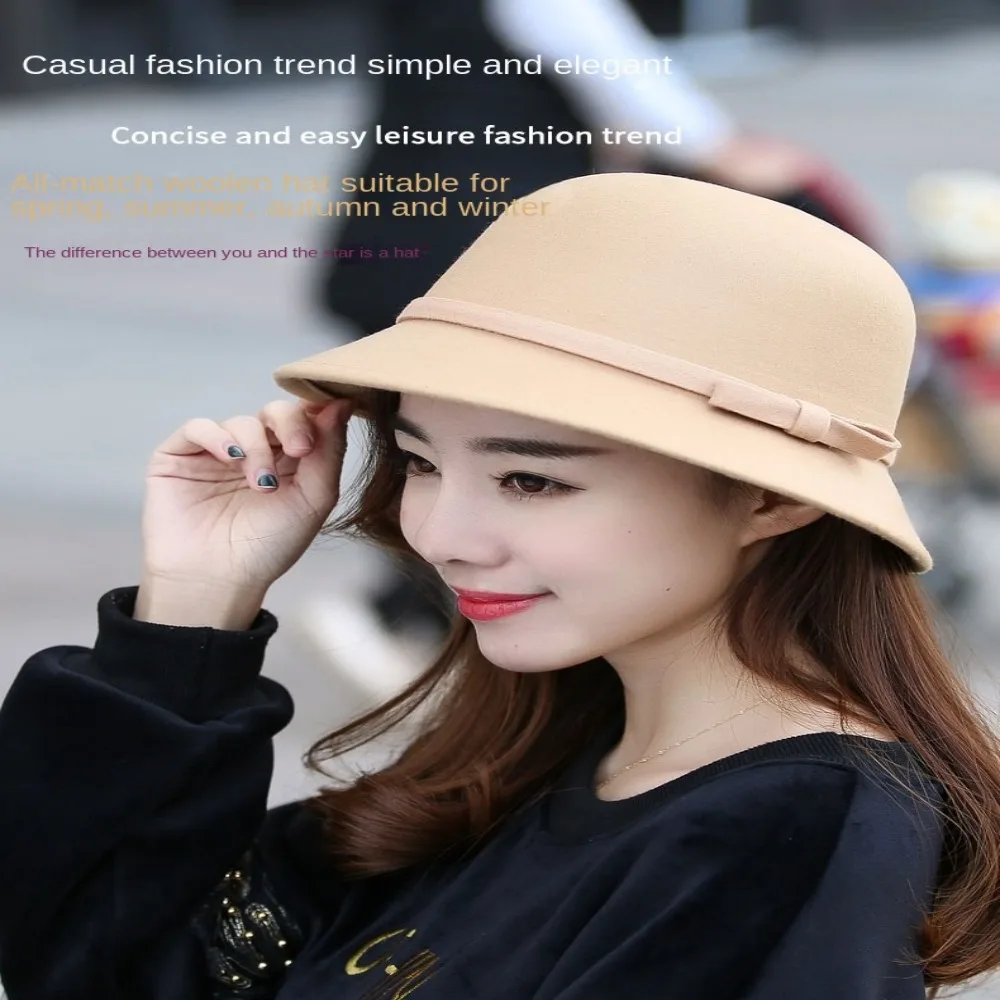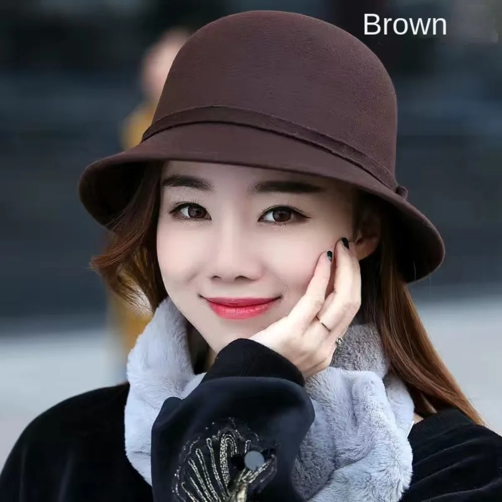 Women’s Vintage Wool Fedora Bowler Hat – Elegant Autumn Winter Warm Cloche Bucket Cap