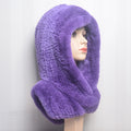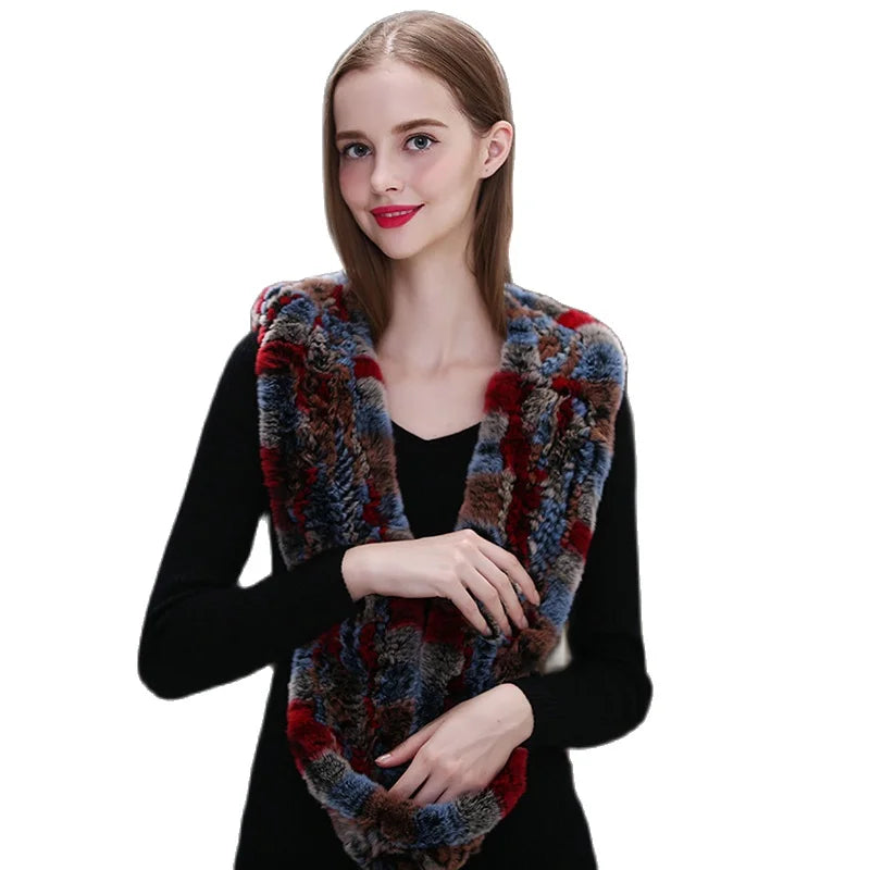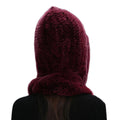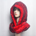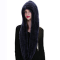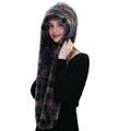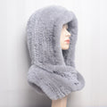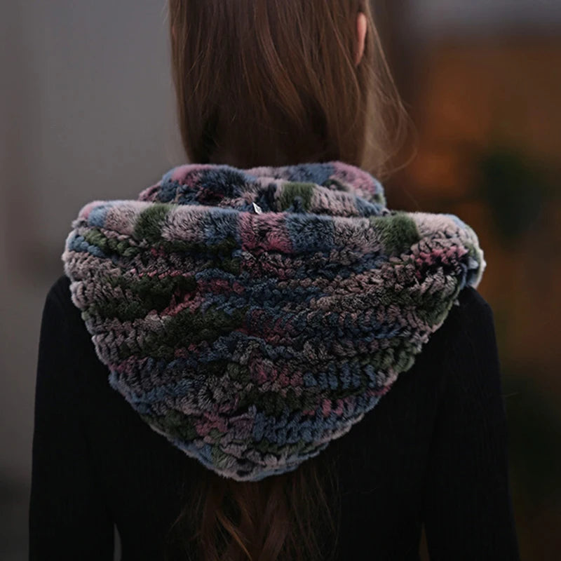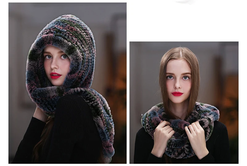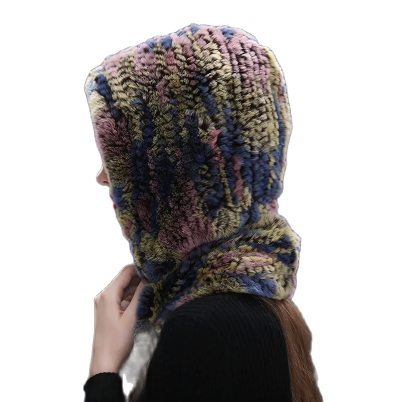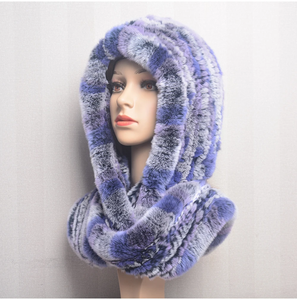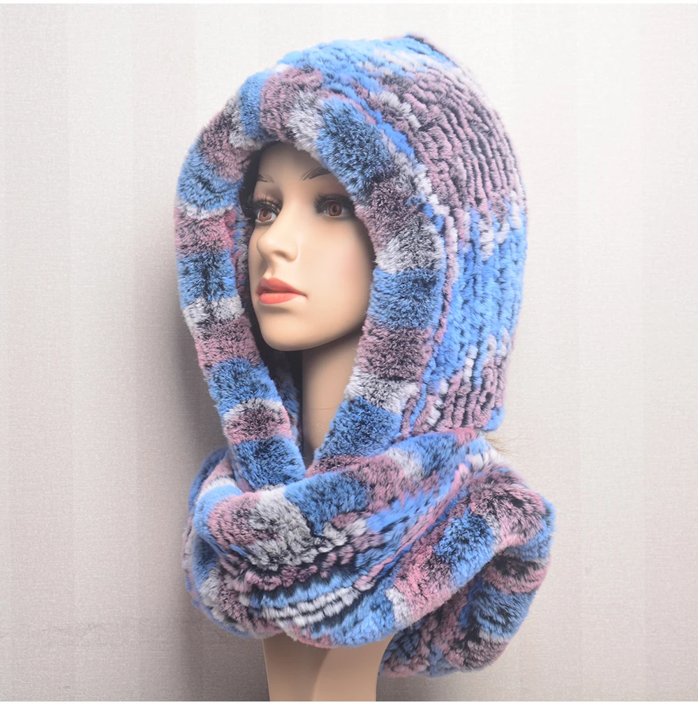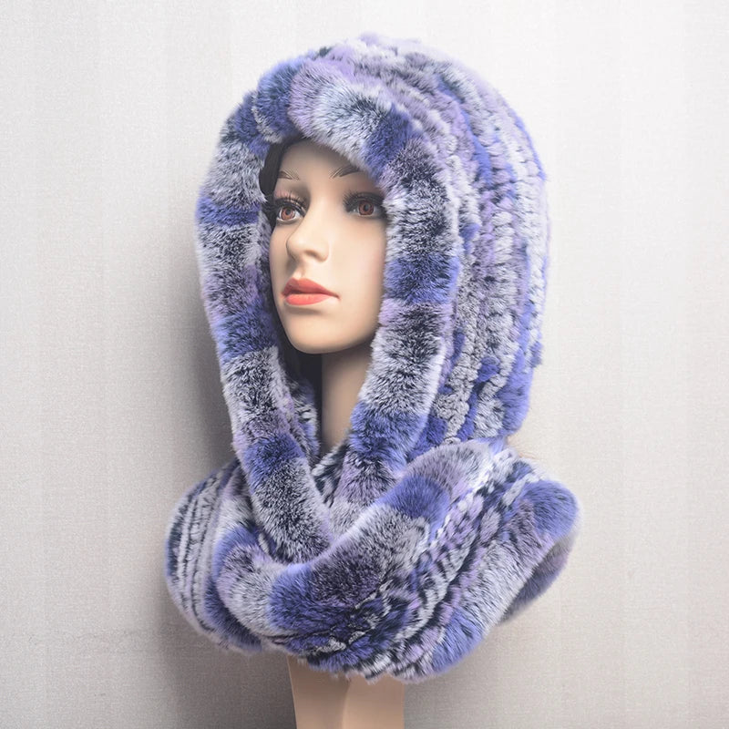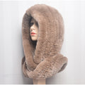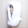 Women’s Winter Fur Hat with Hooded Scarf – Knitted Rex Rabbit Fur Bonnet for Warmth