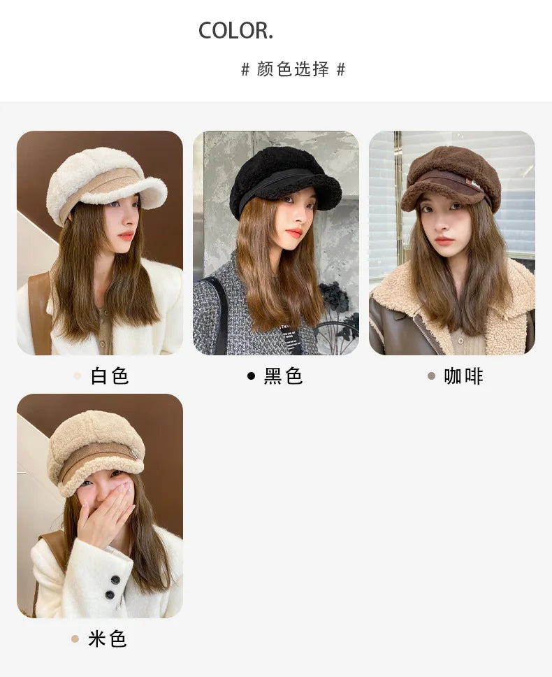 Women’s Winter Octagon Beret – Faux Shearling Thermal Hat, Korean Fashion Adjustable Outdoor Headwear